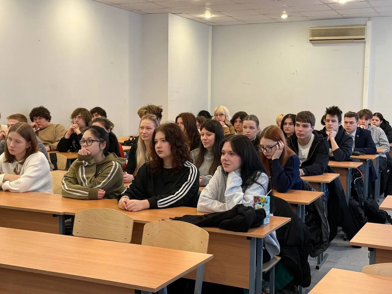 Первыми посетителями выставки стали школьники и студенты.