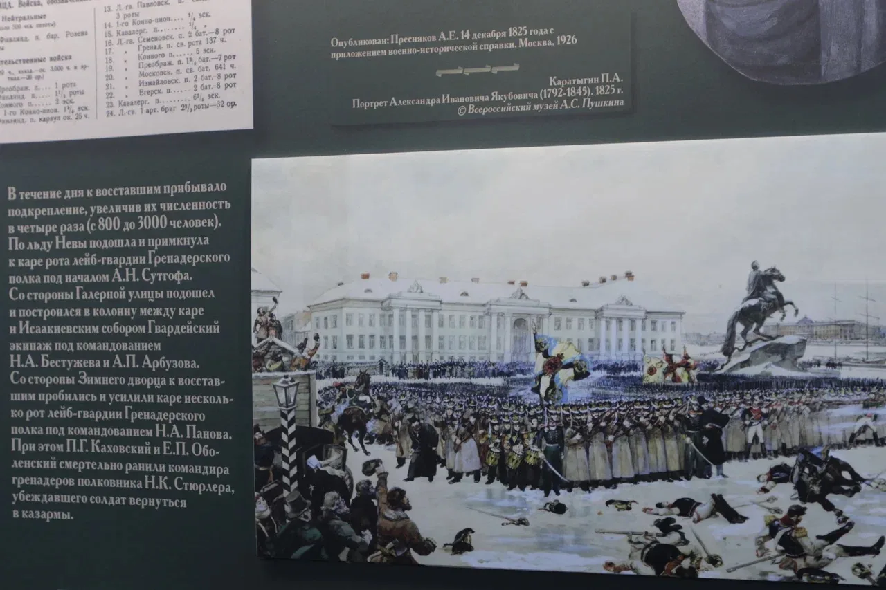 Наравне с декабристами экспозиция освещает и судьбы известных деятелей эпохи, чьи имена были тесно связаны с событиями 1825 года и их последствиями. К ним безусловно относится и Александр Пушкин.