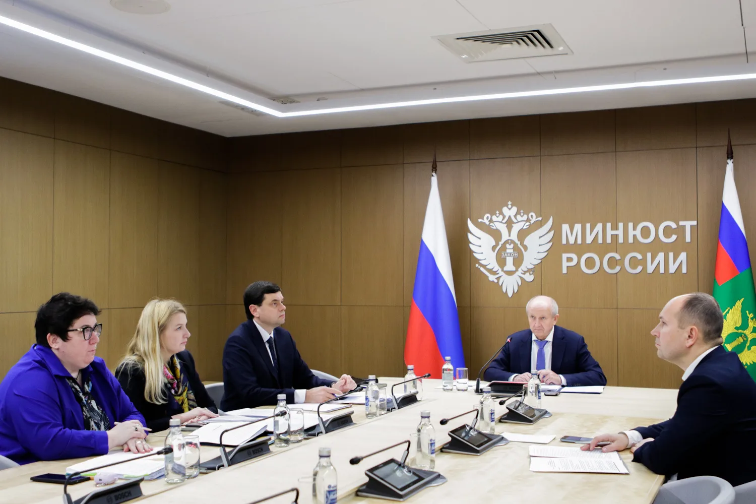 ✅ В Главном управлении Минюста России по Новосибирской области мероприятие прошло в режиме ВКС под председательством замминистра юстиции РФ Максима Бесхмельницына.