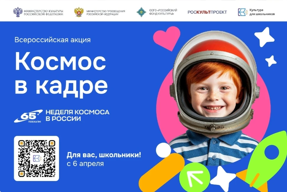 6 апреля стартует Всероссийская творческая акция для школьников «Космос в кадре» в рамках проекта «Культура для школьников». Она приурочена к празднованию в России Недели космоса и направлена на популяризацию истории отечественной космонавтики среди детей и подростков.