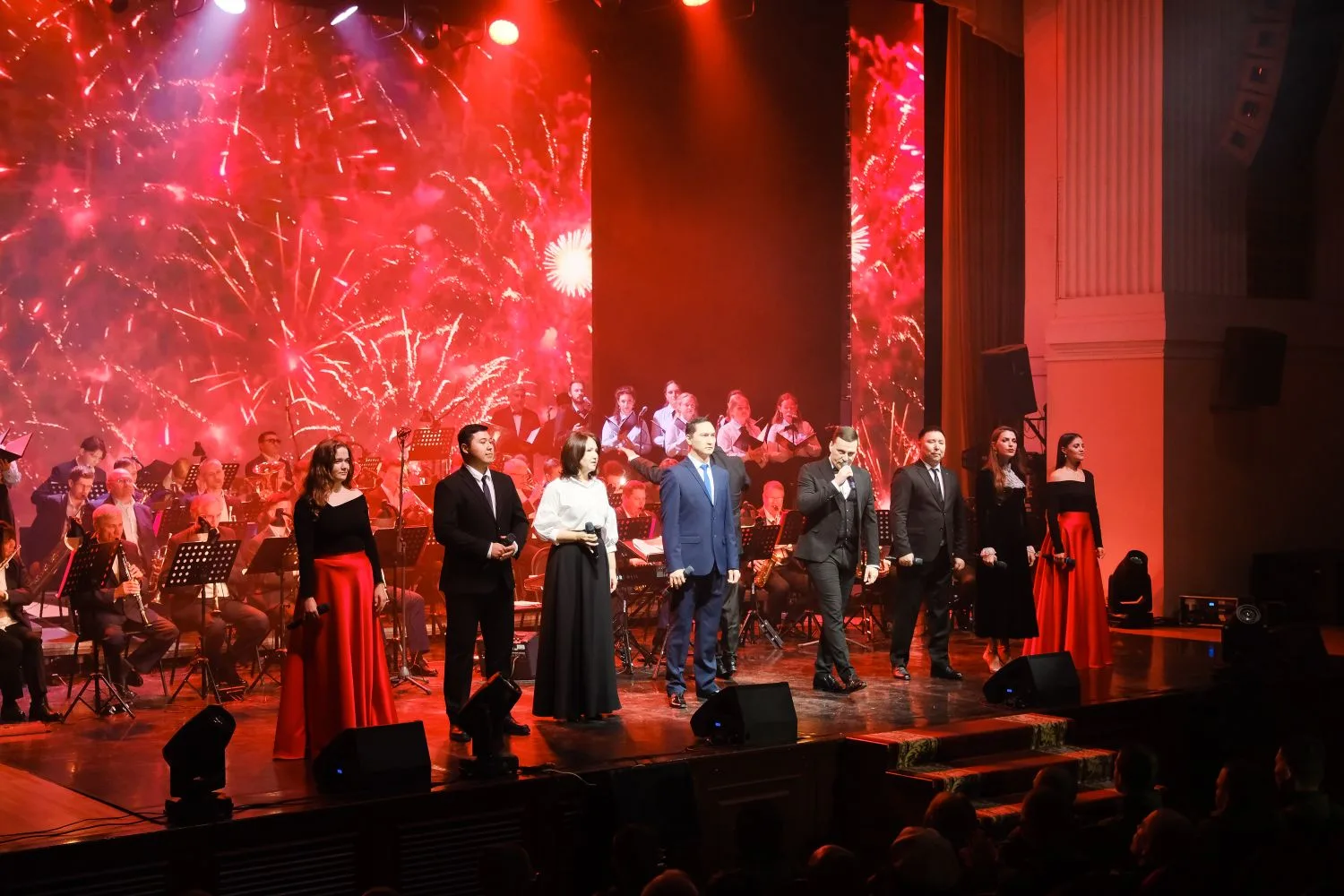 🎶 Ведущие артисты и коллективы региона исполнили известные музыкальные композиции, составляющие культурное достояние нашей страны и прославляющие доблесть, мужество и, конечно, любовь к Отчизне. На сцене выступили Астраханский духовой оркестр, камерный хор Астраханской филармонии, детский вокальный ансамбль «Росток», солисты Дирекции культурно-массовых программ.