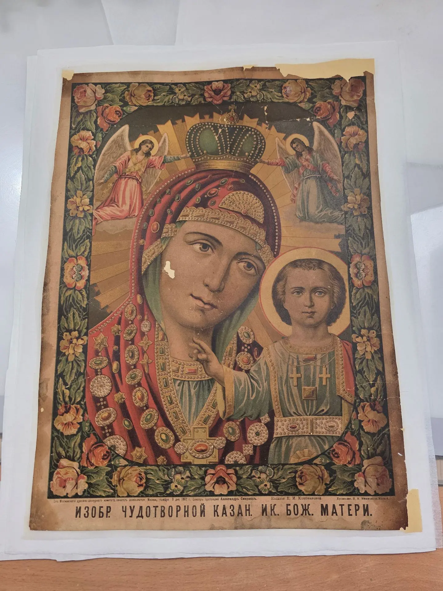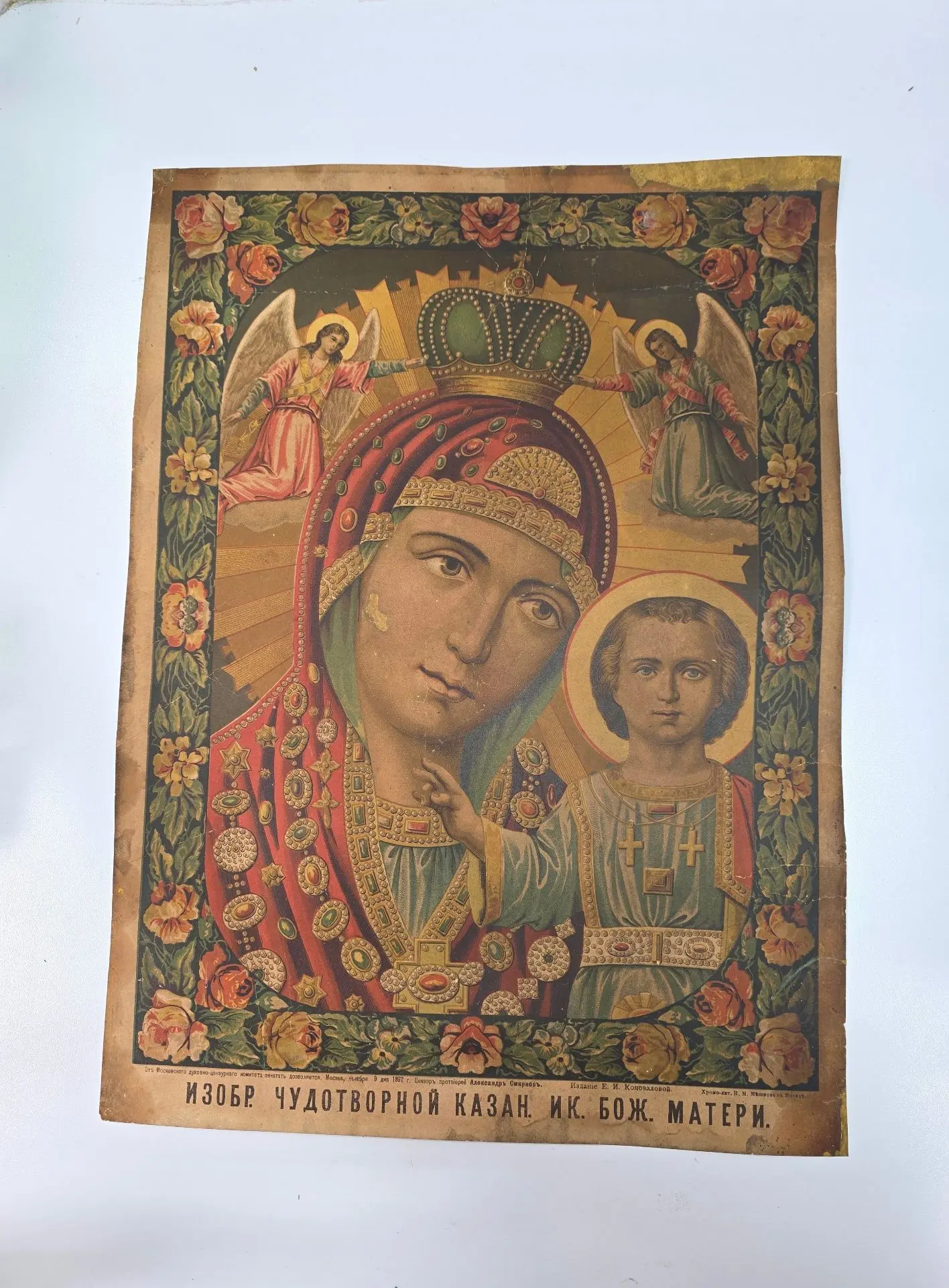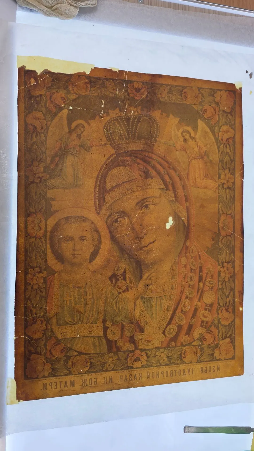 Это была бумажная икона под названием «ИЗОБР. ЧУДОТВОРНОЙ КАЗАН. ИК. БОЖ. МАТЕРИ». Далее надпись гласит, что