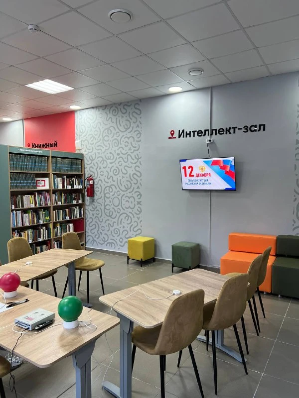 📎Вместо одного зала теперь здесь шесть тематических зон, каждая со своим предназначением: интерактивный «Проспект детства» для малышей, молодёжная зона «#ВходВ» с телевизором и настольными играми, «Книжный меридиан» для тихого чтения, «Интеллект-зал» для мероприятий и даже краеведческая галерея «ФотоФАКТика» в коридоре.