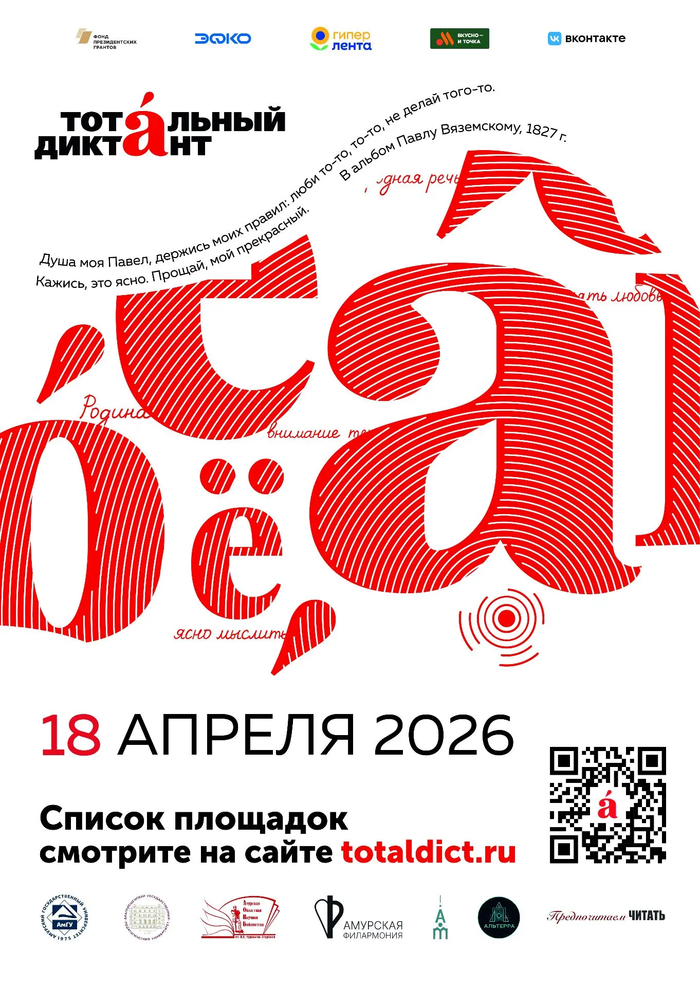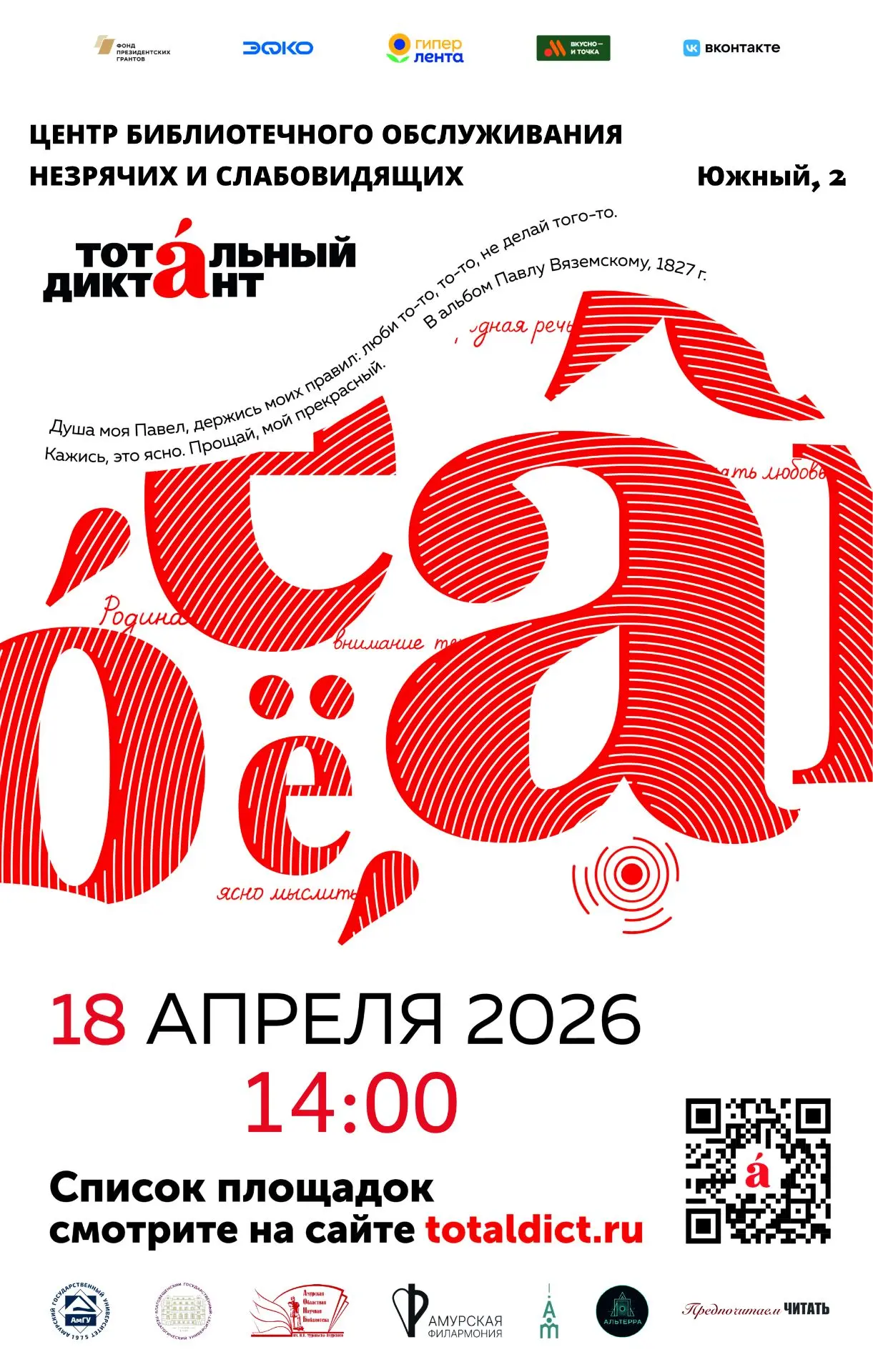 🇷🇺В 2026 году ежегодная Всероссийская акция посвящена Году единства народов России. Мероприятие состоится 17 апреля.