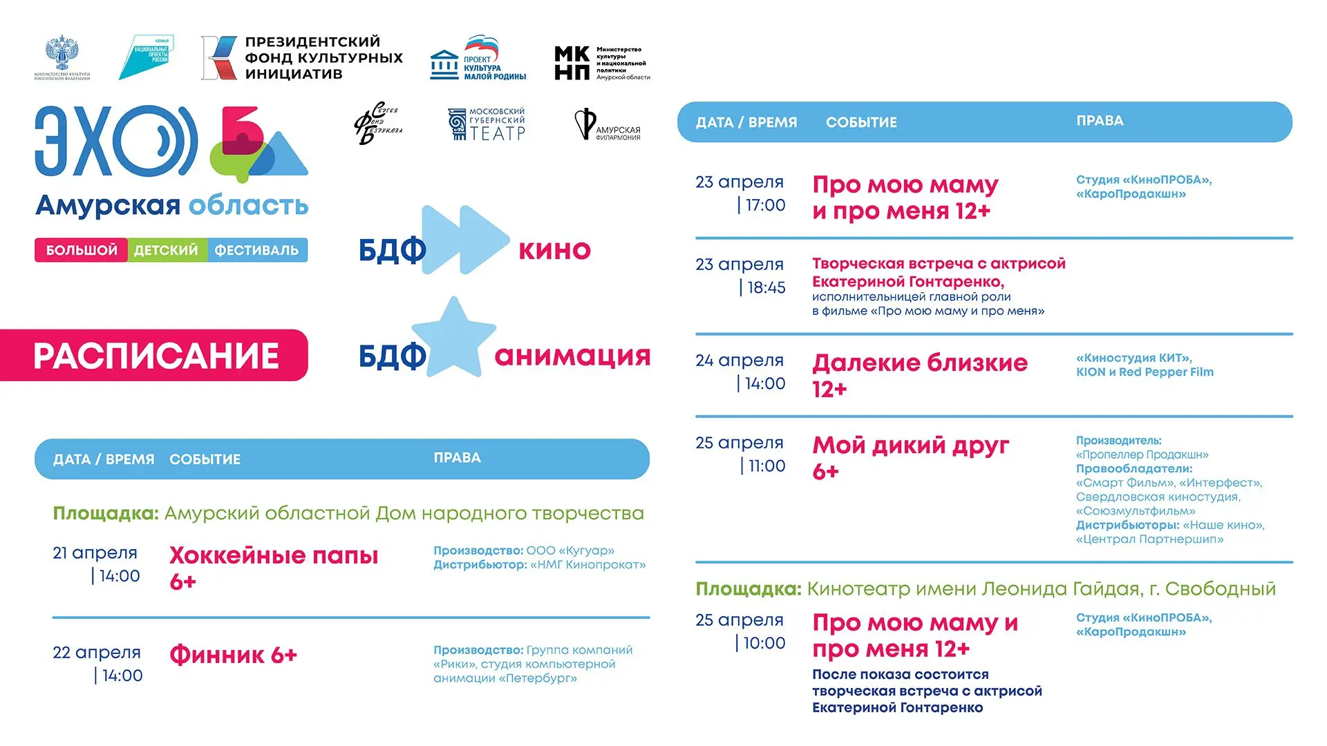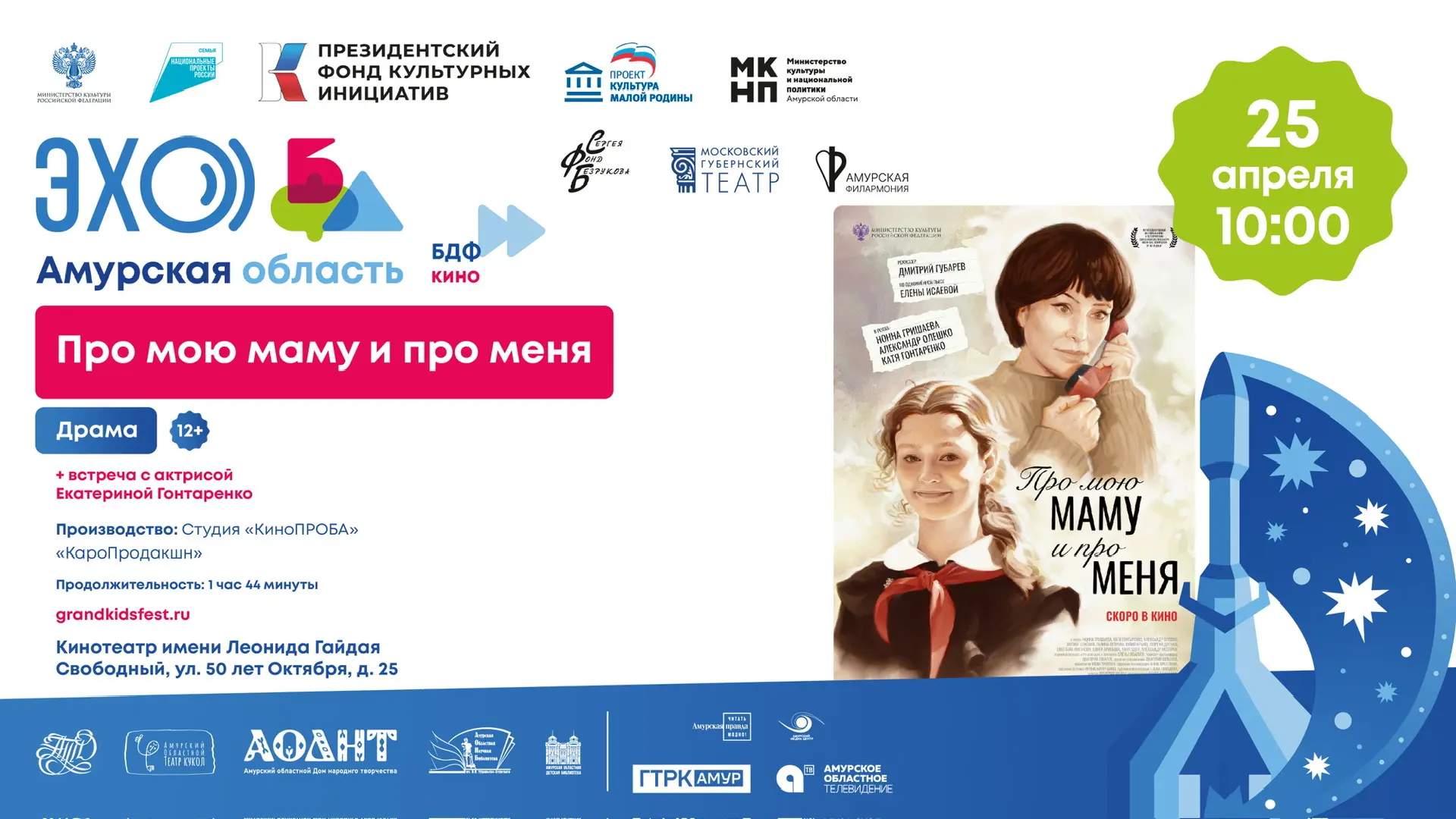 ✅️ Организаторы специального проекта «ЭХО БДФ Амурская область» — Фонд поддержки и развития социокультурных проектов Сергея Безрукова,Московский Губернский театр.