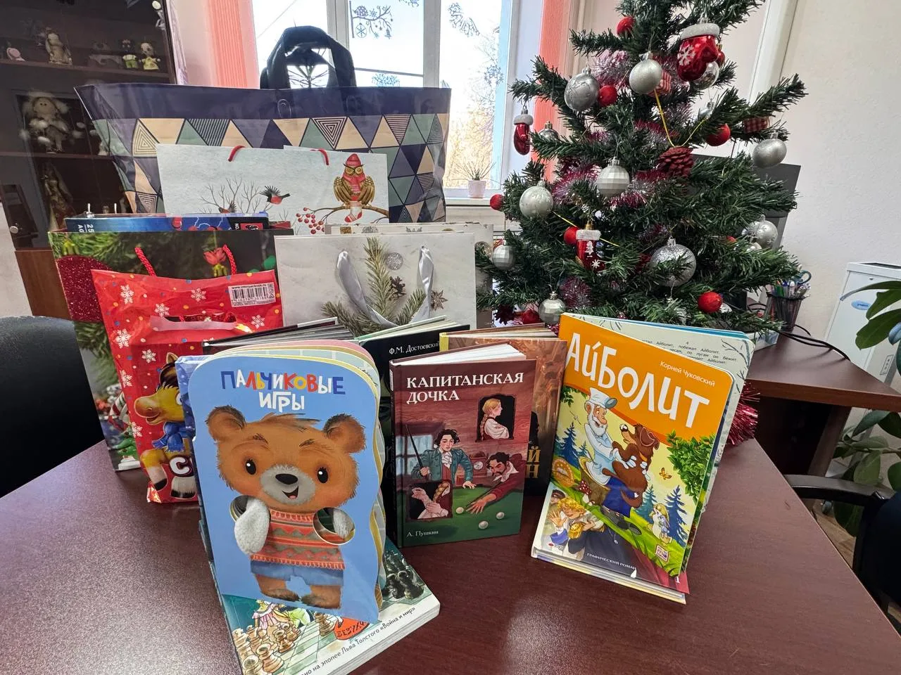 «Помимо тех подарков, которые ребята пожелали сами, решила добавить ещё немного волшебства — подарить детям книги. Это графические романы на основе русской классики. Невероятно красивые иллюстрированные издания сделают зимние дни ярче и интереснее. А малышей порадуют пальчиковая книжка-игрушка и любимая многими поколениями сказка Корнея Чуковского «Доктор Айболит», - рассказала министр культуры и национальной политики Амурской области Надежда Доргунова.