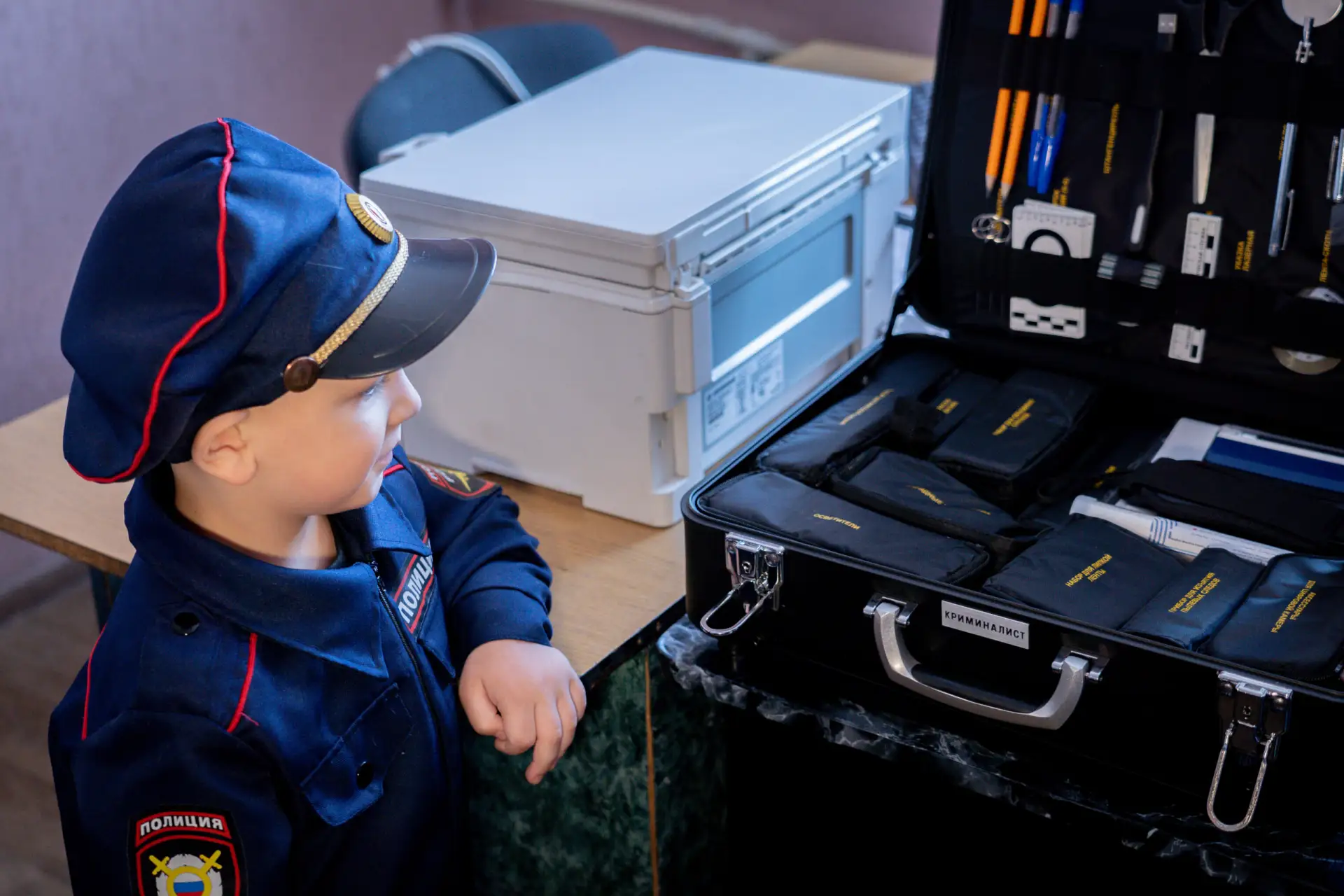 Для него провели настоящую экскурсию: показали, как работают полицейские, познакомили с деятельностью криминалистов, рассказали о службе и ответственности, которая стоит за этой профессией.