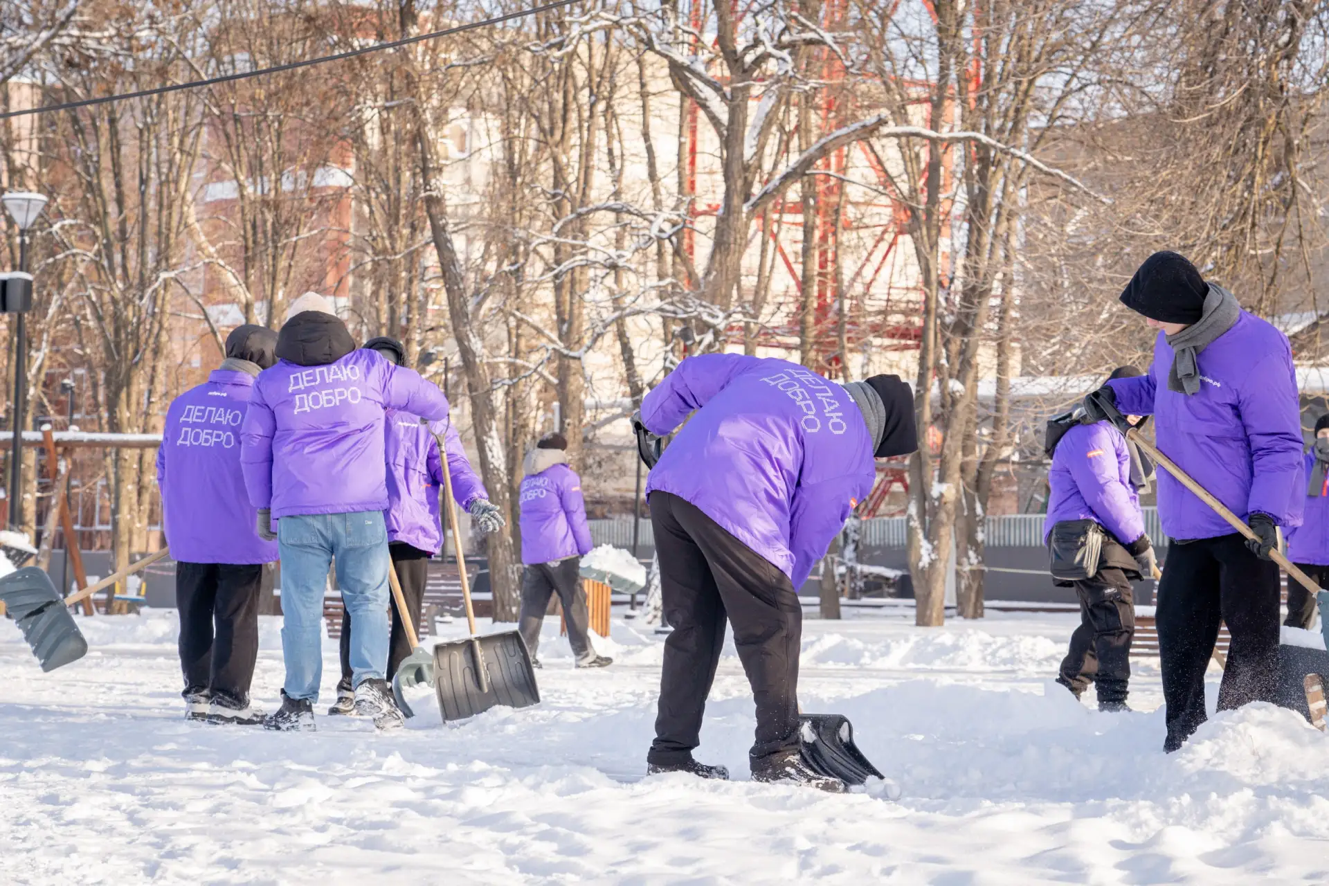 ❄️ Коммунальные службы занимаются уборкой важных социальных объектов, а ребята не остаются в стороне и приходят на помощь, чтобы сегодня после учёбы/работы можно было с комфортом пройтись по вечернему парку.