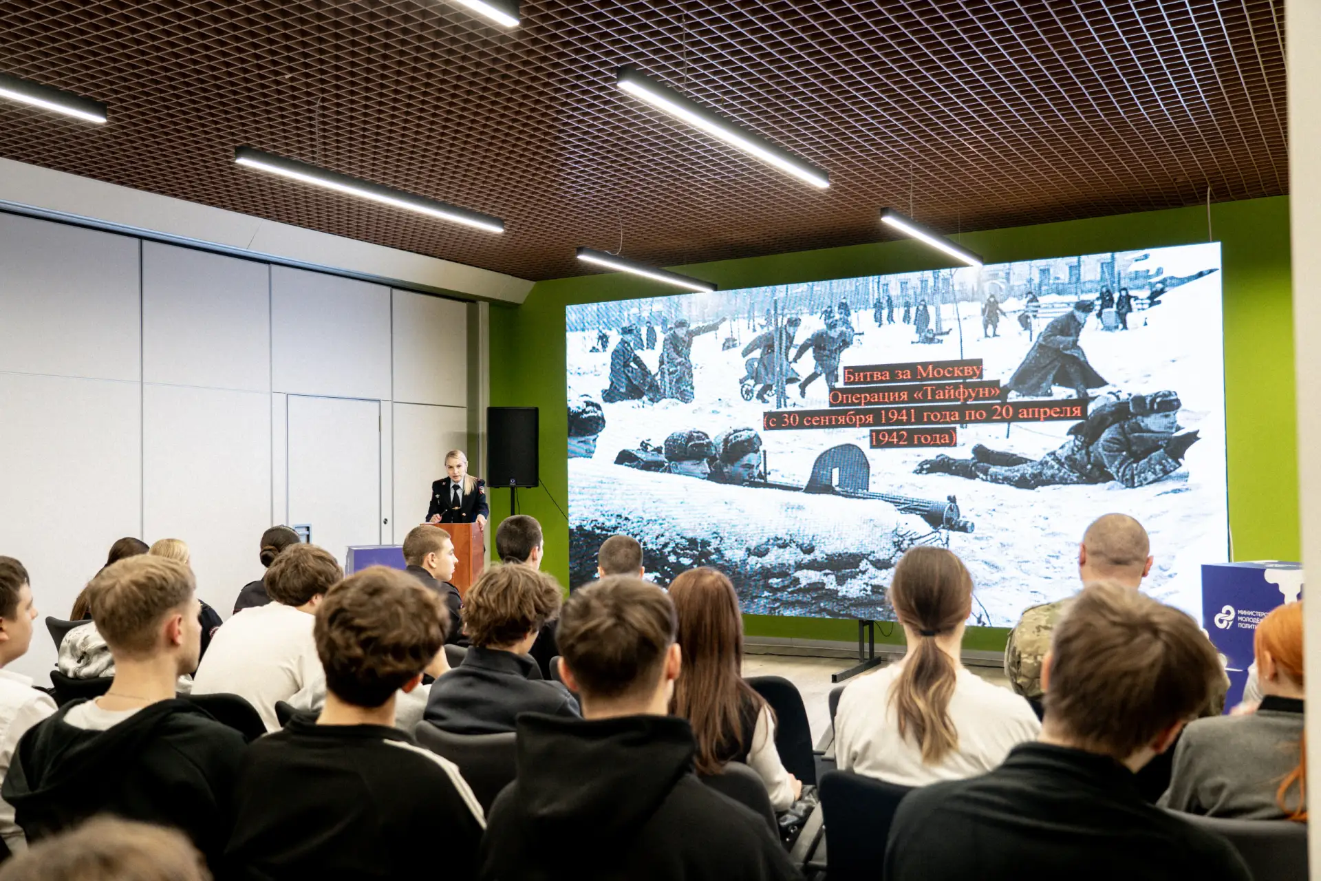 Мероприятие стартовало с лекции Людмилы Горбатюк, старшего преподавателя кафедры государственных и гражданско-правовых дисциплин учебного учреждения, которая рассказала о значимых сражениях и битвах Великой Отечественной войны.