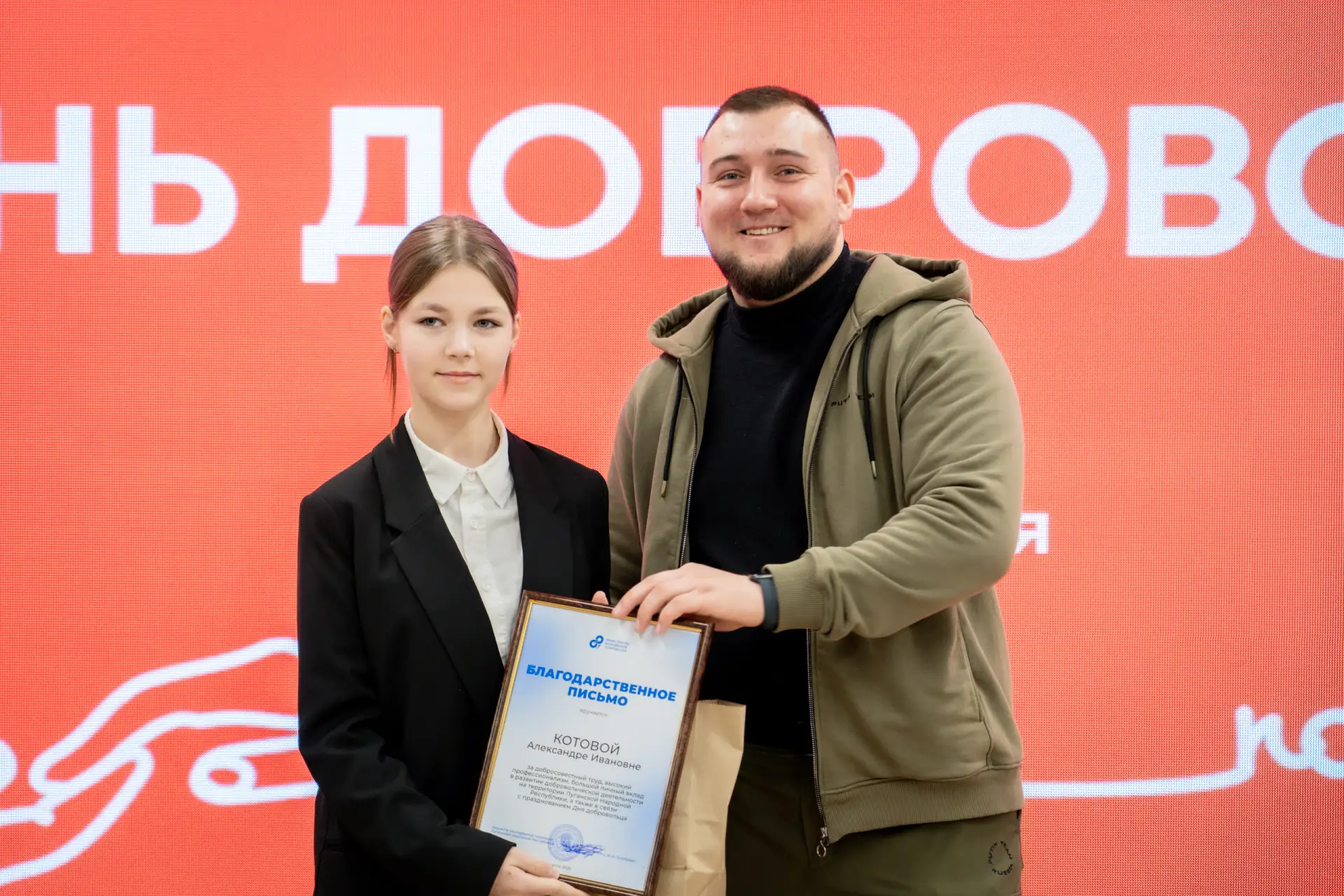 В ходе церемонии волонтёров наградили благодарственными письмами от Минмола ЛНР и Дома молодёжи. Также благодарности получили партнеры, поддерживающие организацию #МЫВМЕСТЕ.