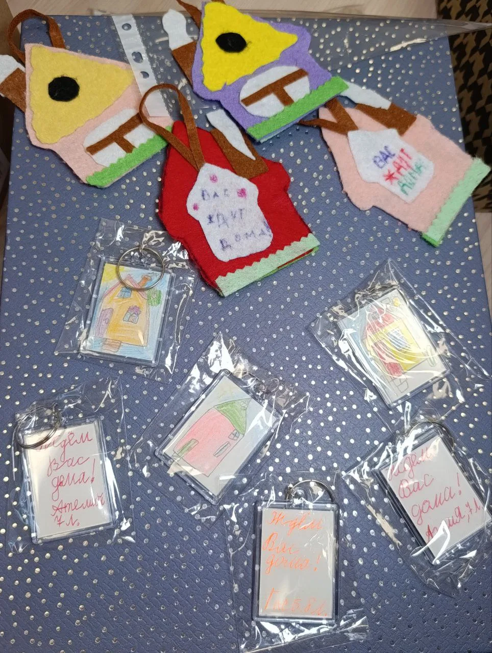 Основными участниками акции стали ребята из начальной школы (1-4 классы). Несмотря на юный возраст, они со всей серьезностью подошли к делу. На уроках вместе с учителями ребята мастерили сувениры, открытки и особенные талисманы - брелоки, сделанные своими руками, с самыми важными словами: «Мы ждем вас домой!».