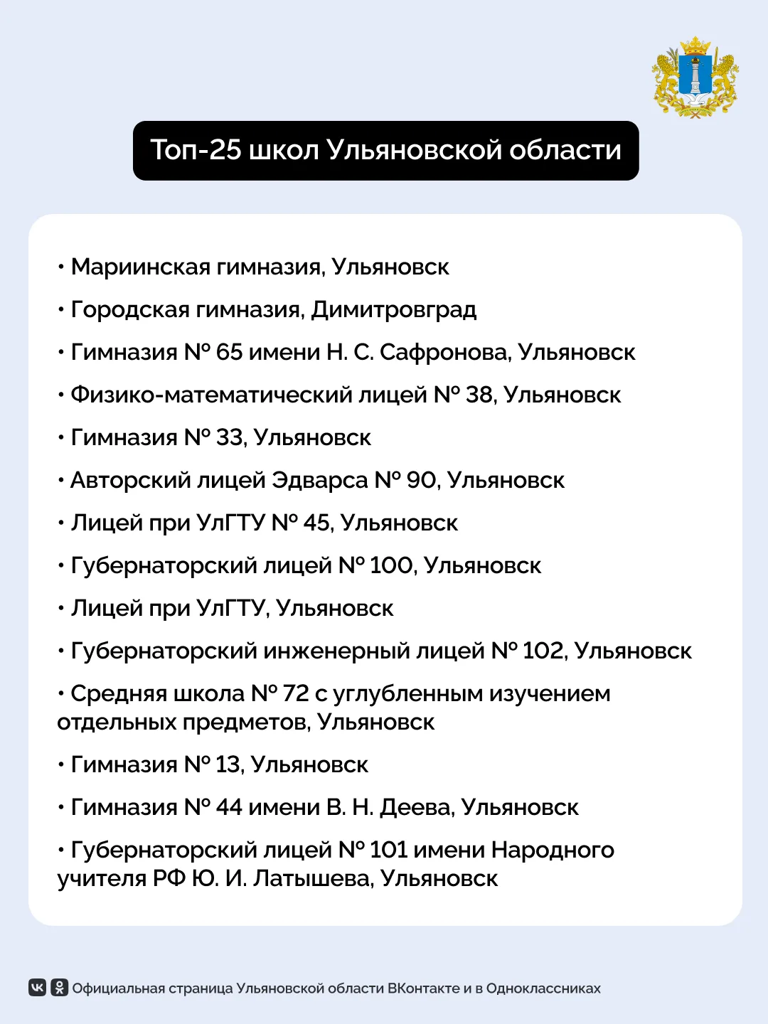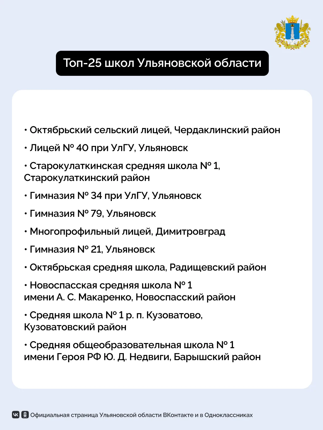 🏫 В Ульяновской области составили топ-25 школ по итогам 2024-2025 учебного года