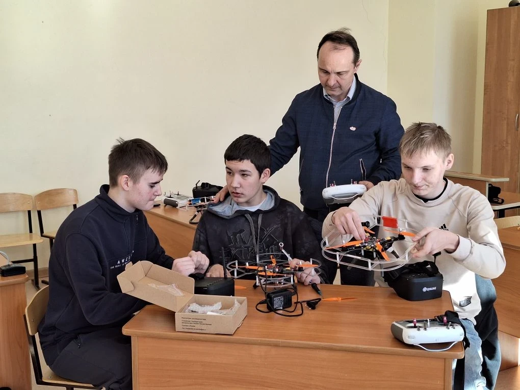 Ребята демонстрируют свои знания и умения в номинациях «Гонщик БАС» и «Блочное программирование полета и запуска квадрокоптера».