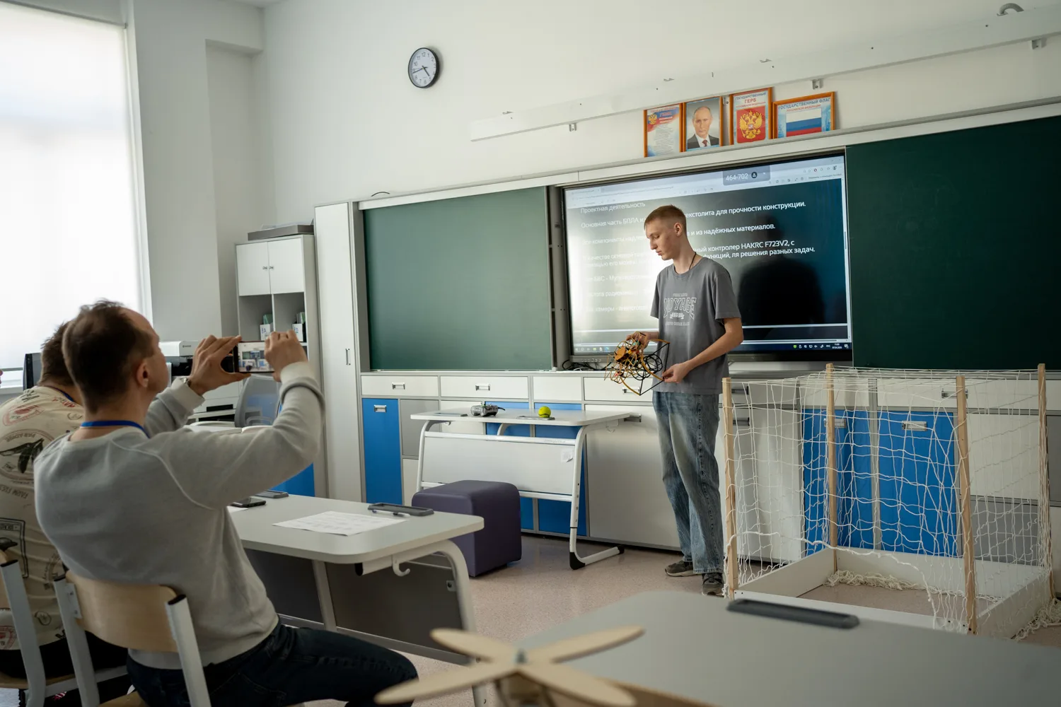 Это участники из общеобразовательных организаций, на базе которых по федеральному проекту «Кадры для БАС» созданы специализированные классы (кружки) по изучению беспилотных авиационных систем, а также из образовательных организаций – сетевых партнеров.
