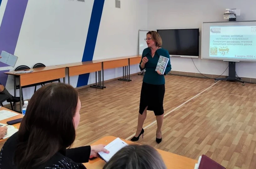 🔹Ольга Дудина, директор Регионального методического центра развития квалификаций, провела интерактив с педагогами по генерации метафоры игровой концепции конкурсного урока.
