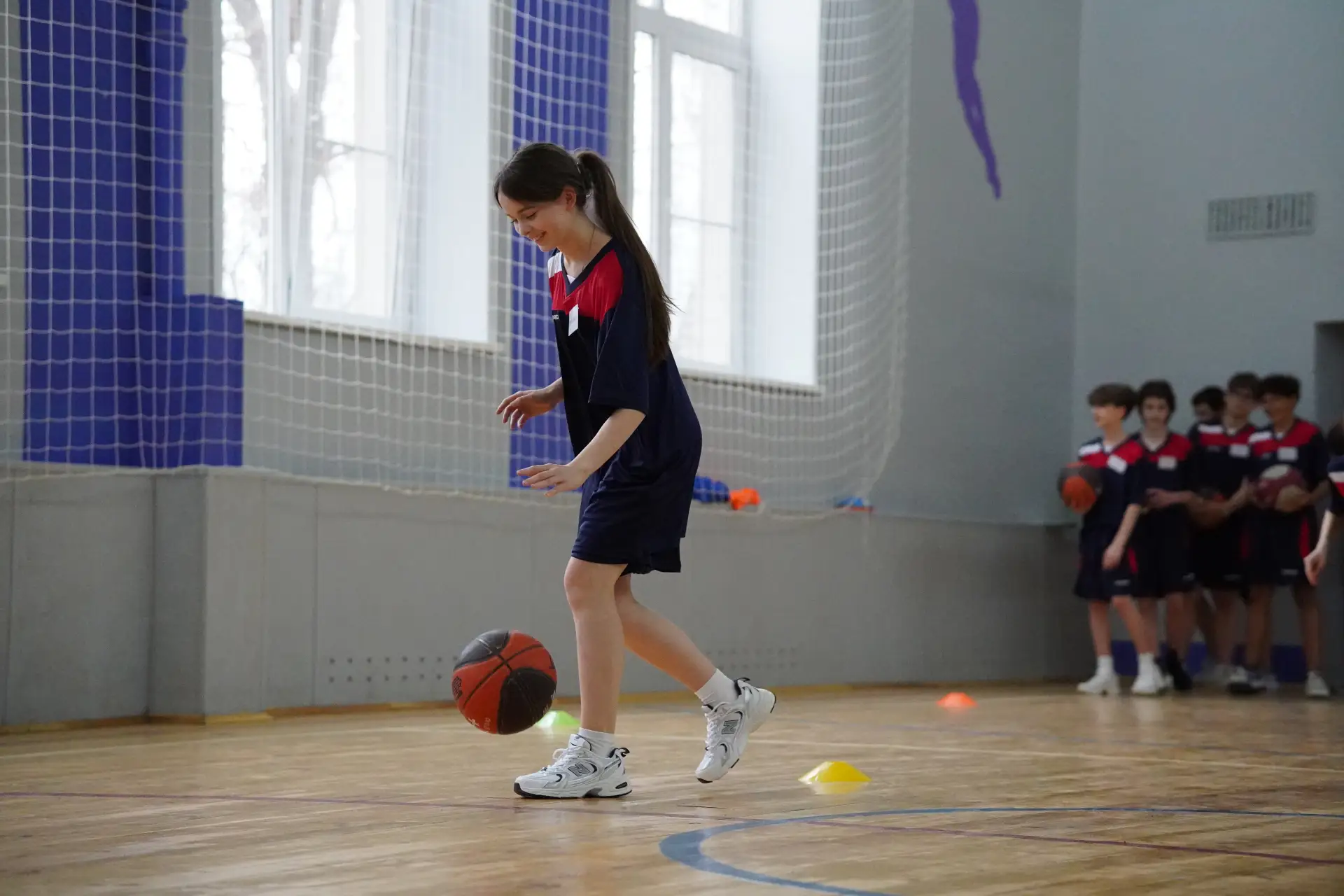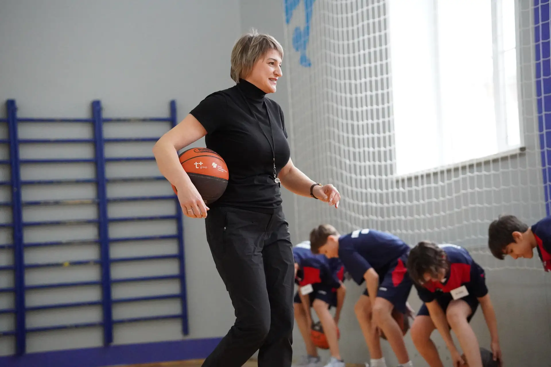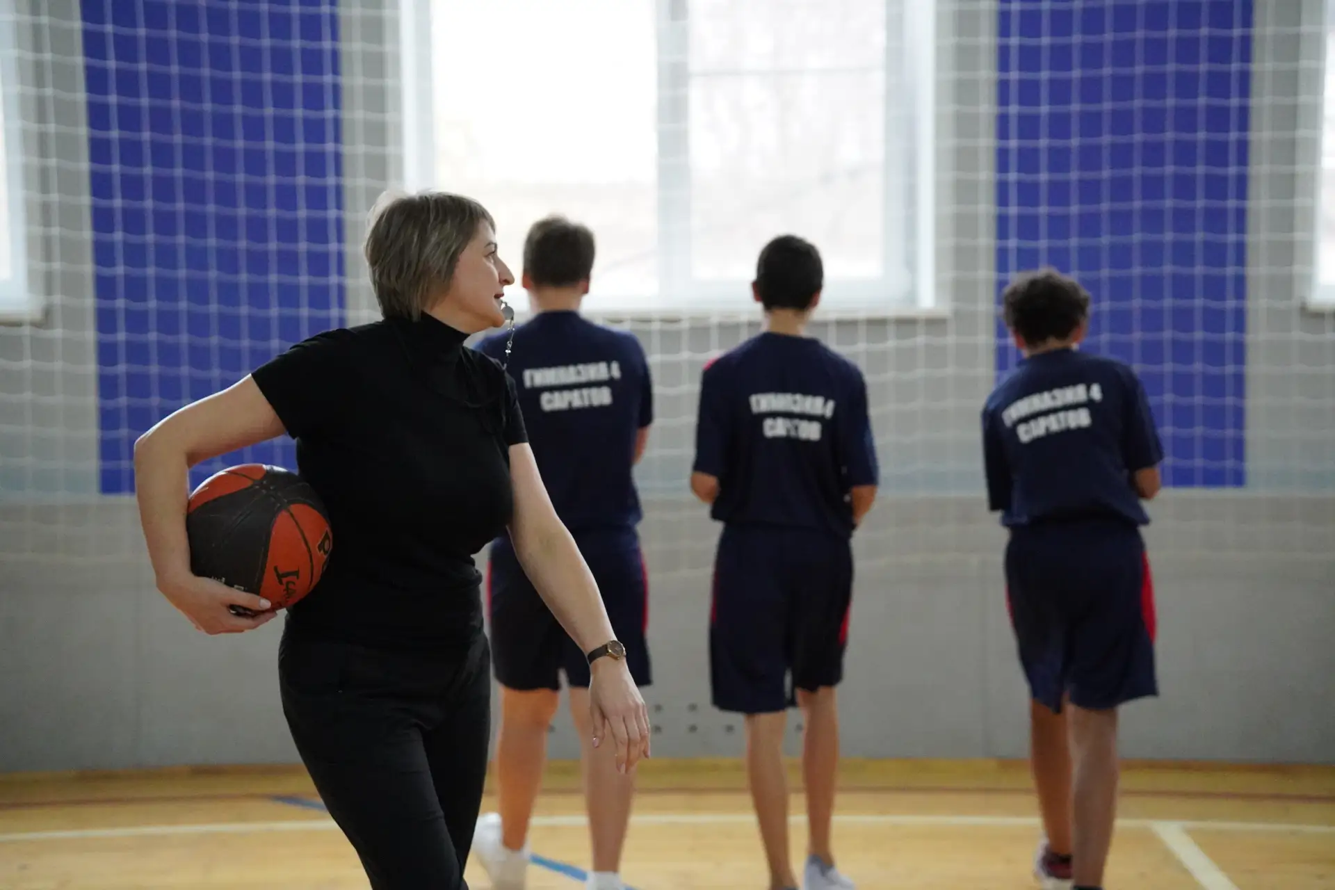 Урок физкультуры провела Ольга Тарасова, учитель физической культуры гимназии села Ивантеевка. В 7 классе в спортивном зале она не только обучила школьников элементам баскетбола, но и рассказала об истории этого вида спорта.