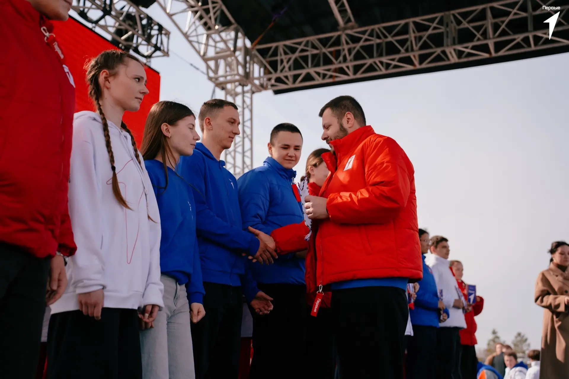 Торжественная церемония началась с чествования участников СВО и волонтеров, обеспечивающих поддержку фронта. Их отметили в первую очередь как символ признания особого вклада в защиту национальных интересов страны.