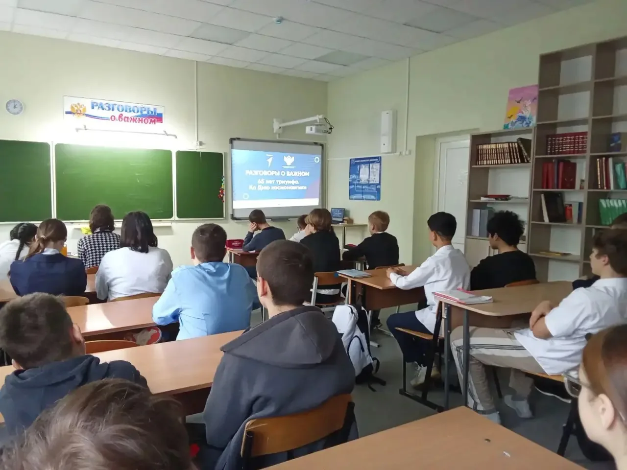 ✨В первый день Недели космоса, в школах региона состоялись тематические занятия «Разговоры о важном» на тему «65 лет триумфа. Ко Дню космонавтики». Ребята вспомнили ключевые вехи освоения космоса: первый полет Юрия Гагарина 12 апреля 1961 года, достижения советских и российских ученых, инженеров и космонавтов, важные открытия и миссии, которые сделали страну лидером в космической отрасли.