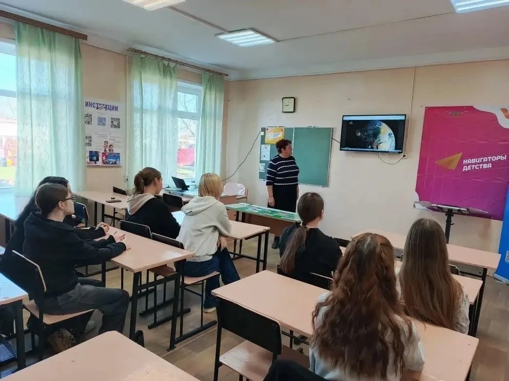 Школьники обсуждали, почему День космонавтики — это символ человеческого мужества, научного прогресса и веры в невозможное. Они смотрели фрагменты исторических хроник и вдохновляющие видеоролики, делились мечтами о будущей профессии — кто-то хочет стать космонавтом, кто-то инженером или ученым, а также участвовали в викторине на знание фактов о космосе.