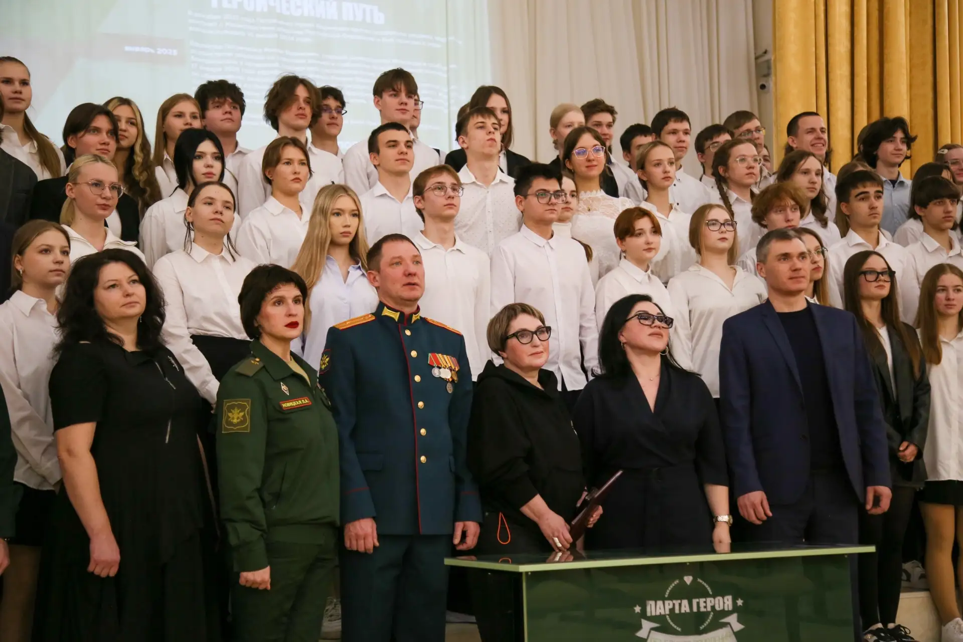 В рамках Всероссийского образовательного проекта «Парта Героя» в Гимназии №1 Г. Саратова состоялась торжественная церемония открытия именной парты, посвященной памяти выпускника школы Романа Петриченко, героически погибшего при исполнении воинского долга в ходе специальной военной операции. Почетное право открытия «Парты Героя» получили лучшие ученики школы — отличники и победители региональных олимпиад, обучающиеся 10 класса Виктория Гусева и Эльдар Исмагулов.