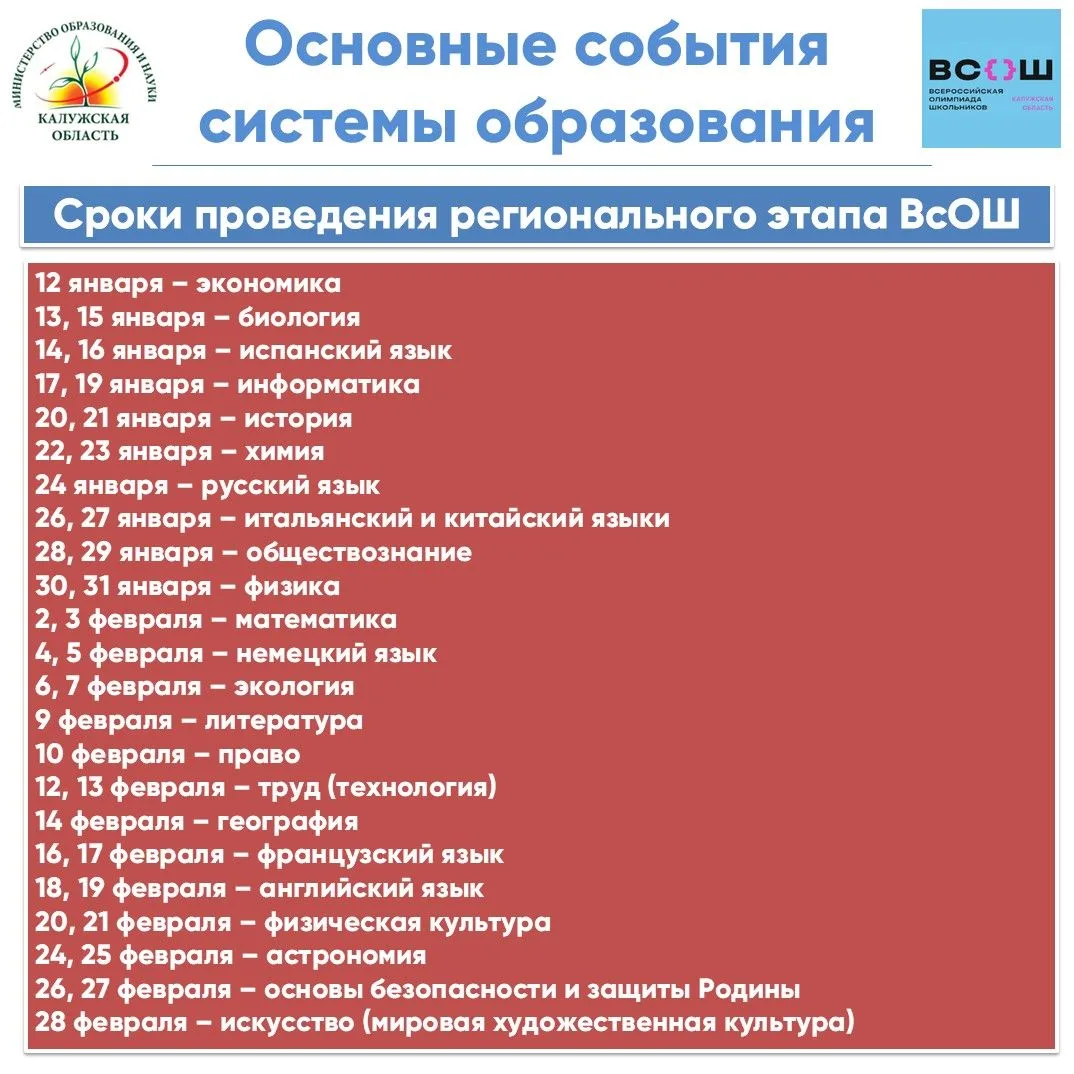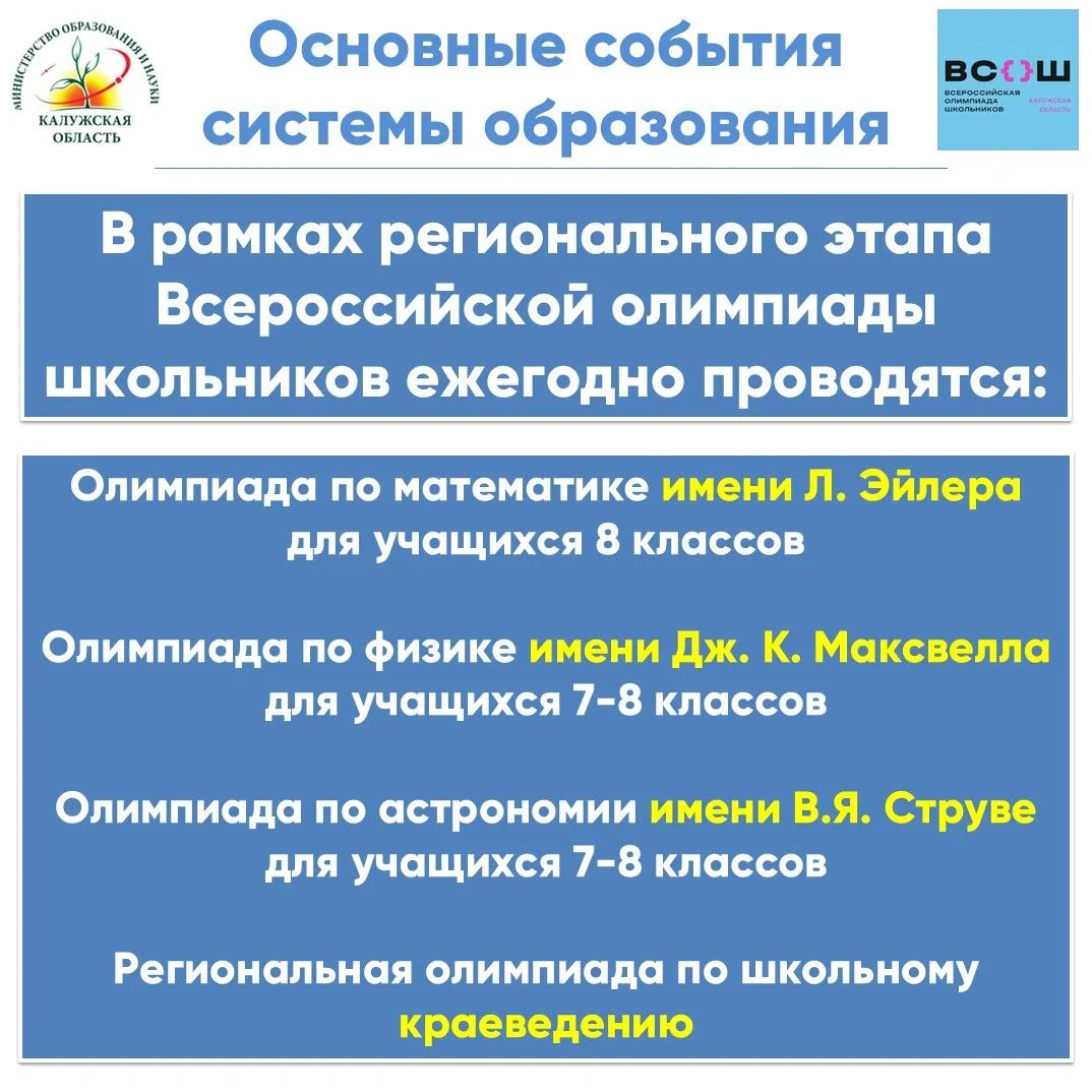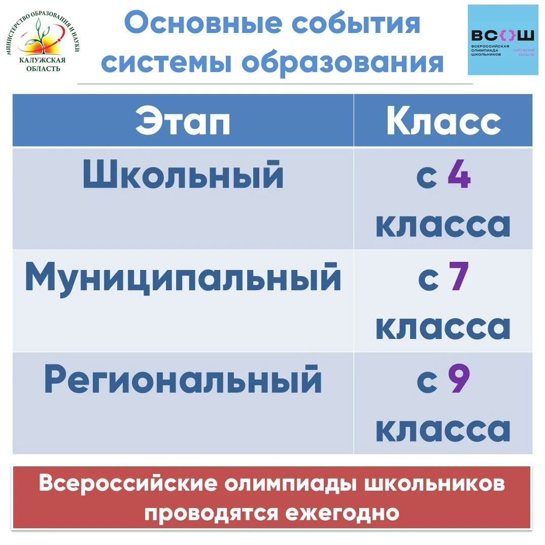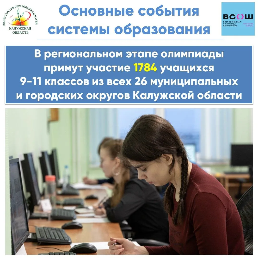 Сегодня в Калужской области стартует региональный этап Всероссийской олимпиады школьников