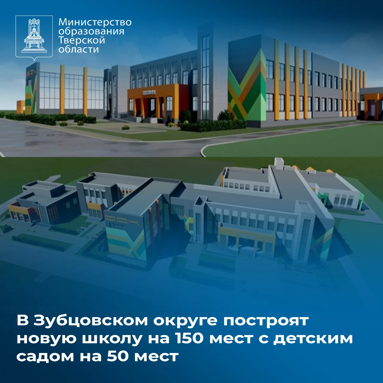 🏫 В Зубцовском округе с помощью масштабного инвестпроекта построят современную школу на 150 мест с детским садом на 50 воспитанников, а также физкультурно-оздоровительный комплекс и клуб.