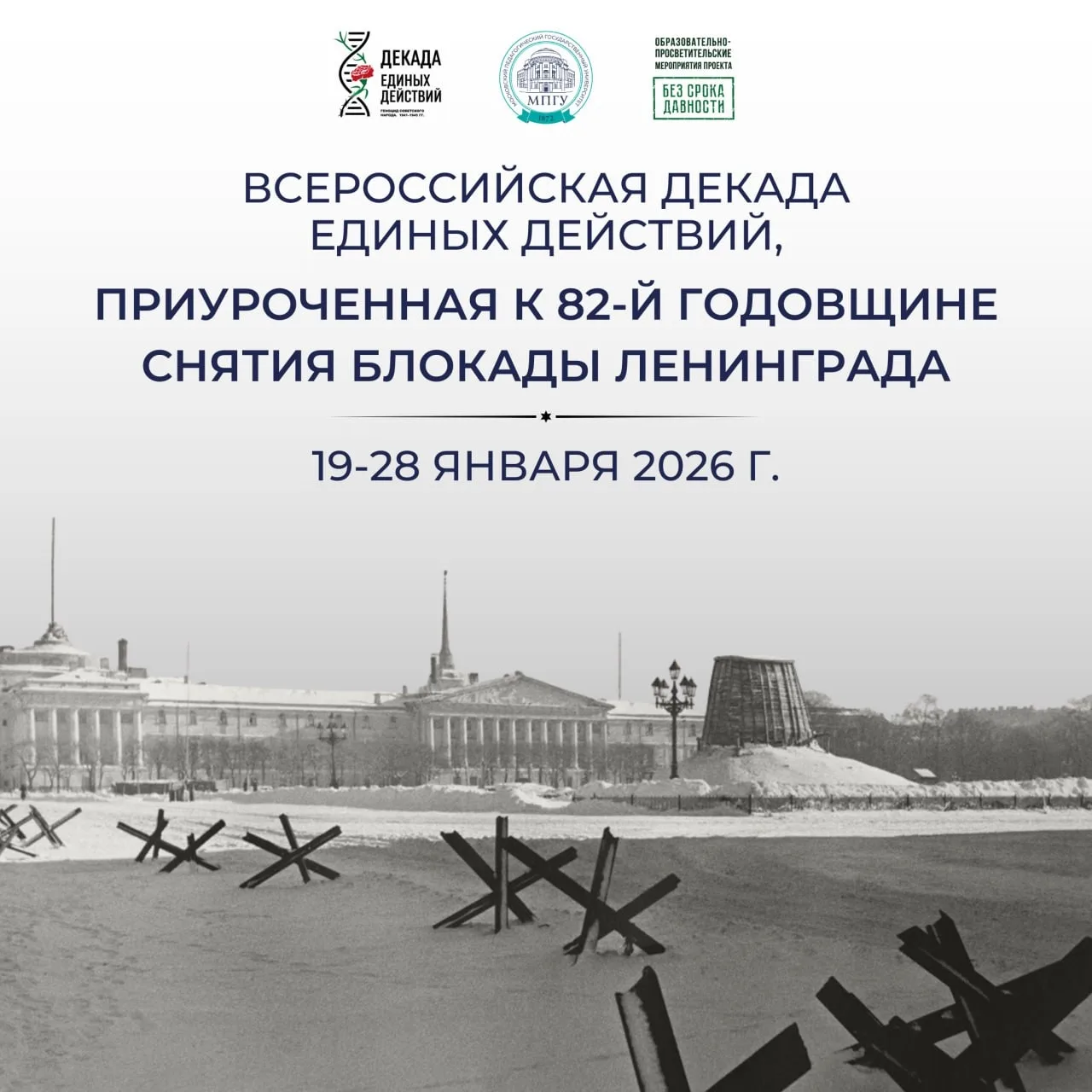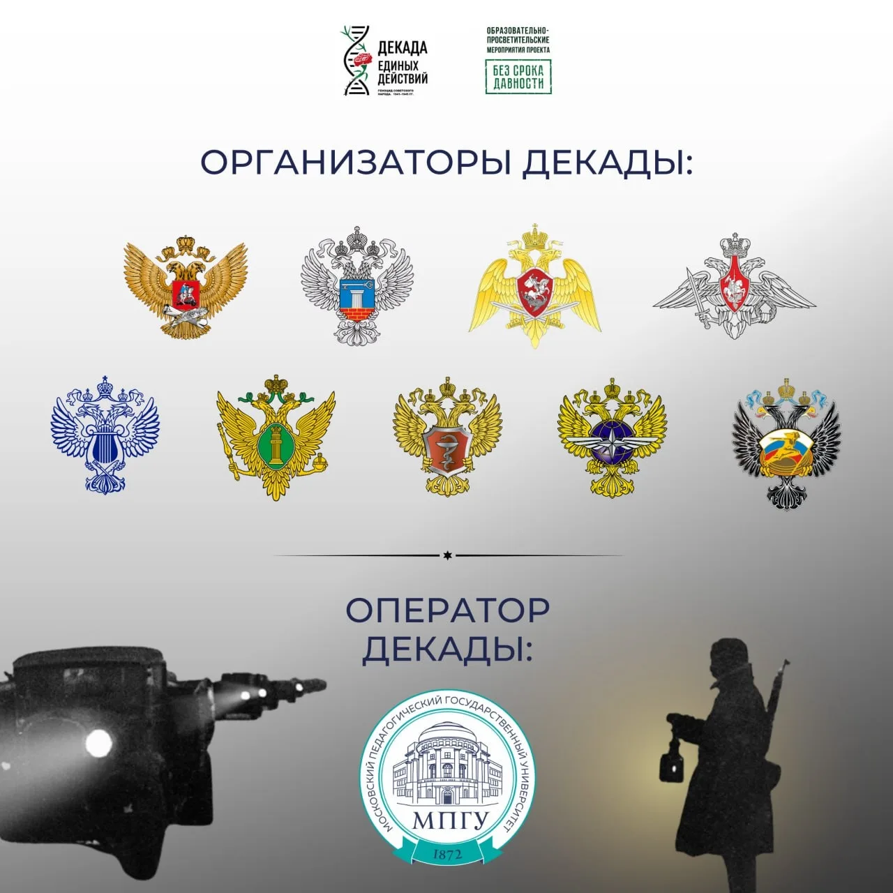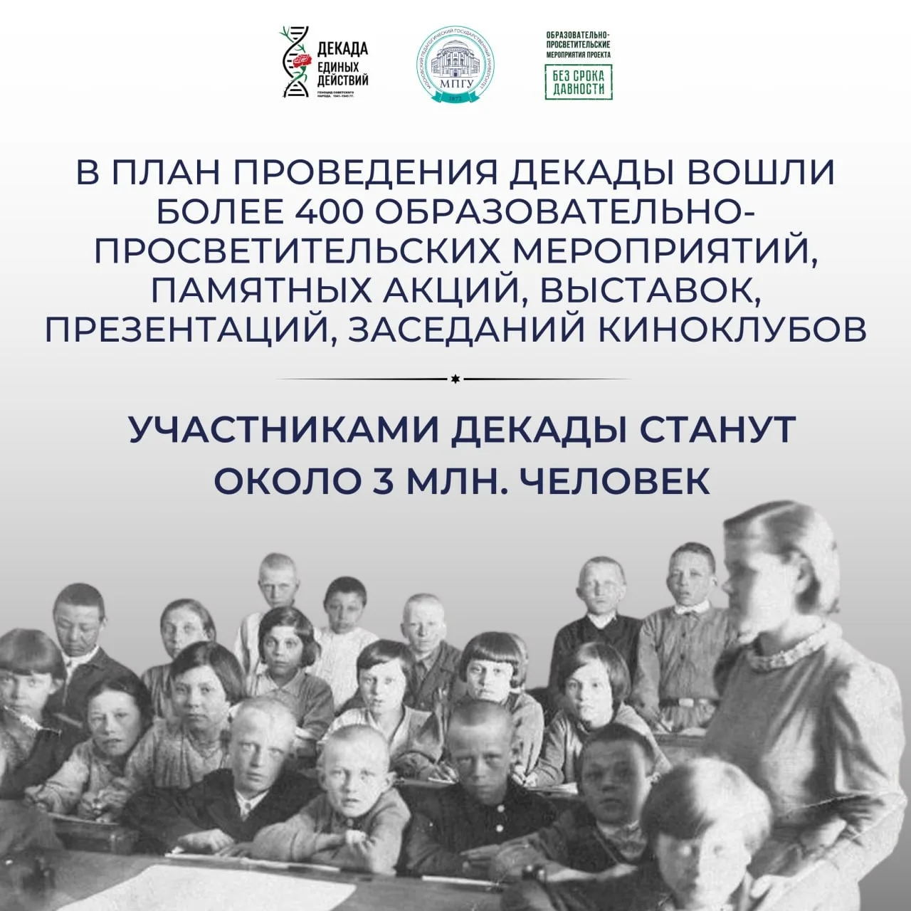 Декада проводится Минпросвещения России и Московским педагогическим государственным университетом согласно плану реализации образовательно-просветительских мероприятий по проекту «Без срока давности».
