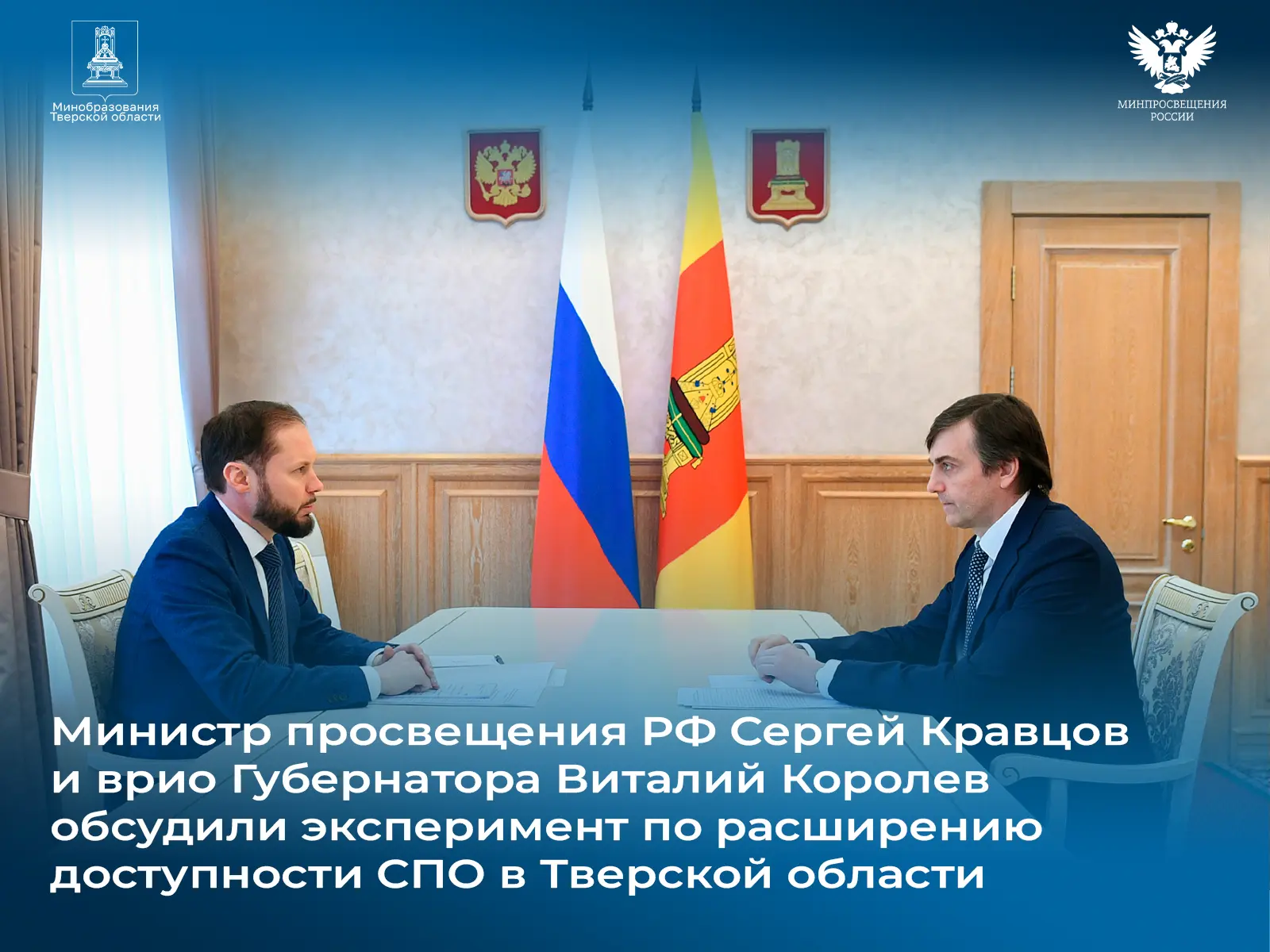🎓 Врио Губернатора Тверской области Виталий Королев и Министр просвещения РФ Сергей Кравцов в рамках рабочей поездки в Тверскую область оценили возможности для подготовки востребованных в экономике региона профессий, созданные в Тверском политехническом колледже по федеральному проекту «Профессионалитет» нацпроекта «Молодежь и дети».