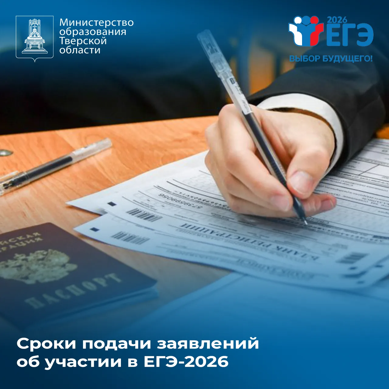 📆 Минобразования Тверской области напоминает о сроках подачи заявлений об участии в ЕГЭ-2026