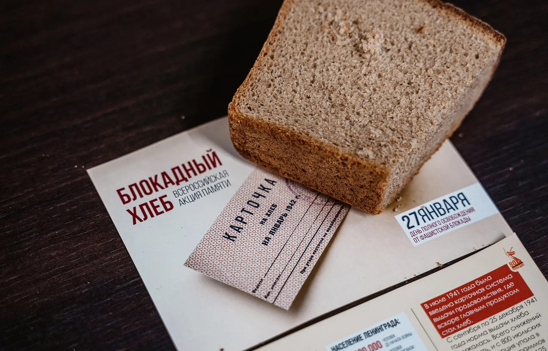 В рамках патриотического мероприятия также прошла традиционная акция «Блокадный хлеб»: каждый участник получил кусочек хлеба весом 125 граммов – минимальную норму в самые тяжелые дни блокады.