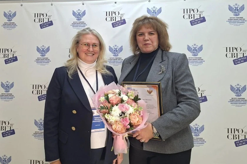 В рамках работы первого дня стратегической сессии состоялась церемония награждения. Коллектив Тверского областного института усовершенствования учителей отмечен Благодарственным письмом Минпросвещения России за значительный вклад в профессиональное развитие педагогических и управленческих кадров в сфере образования. Заместитель Министра просвещения РФ Ольга Колударова вручила награду директору Тверского областного института усовершенствования учителей Оксане Потаповой.