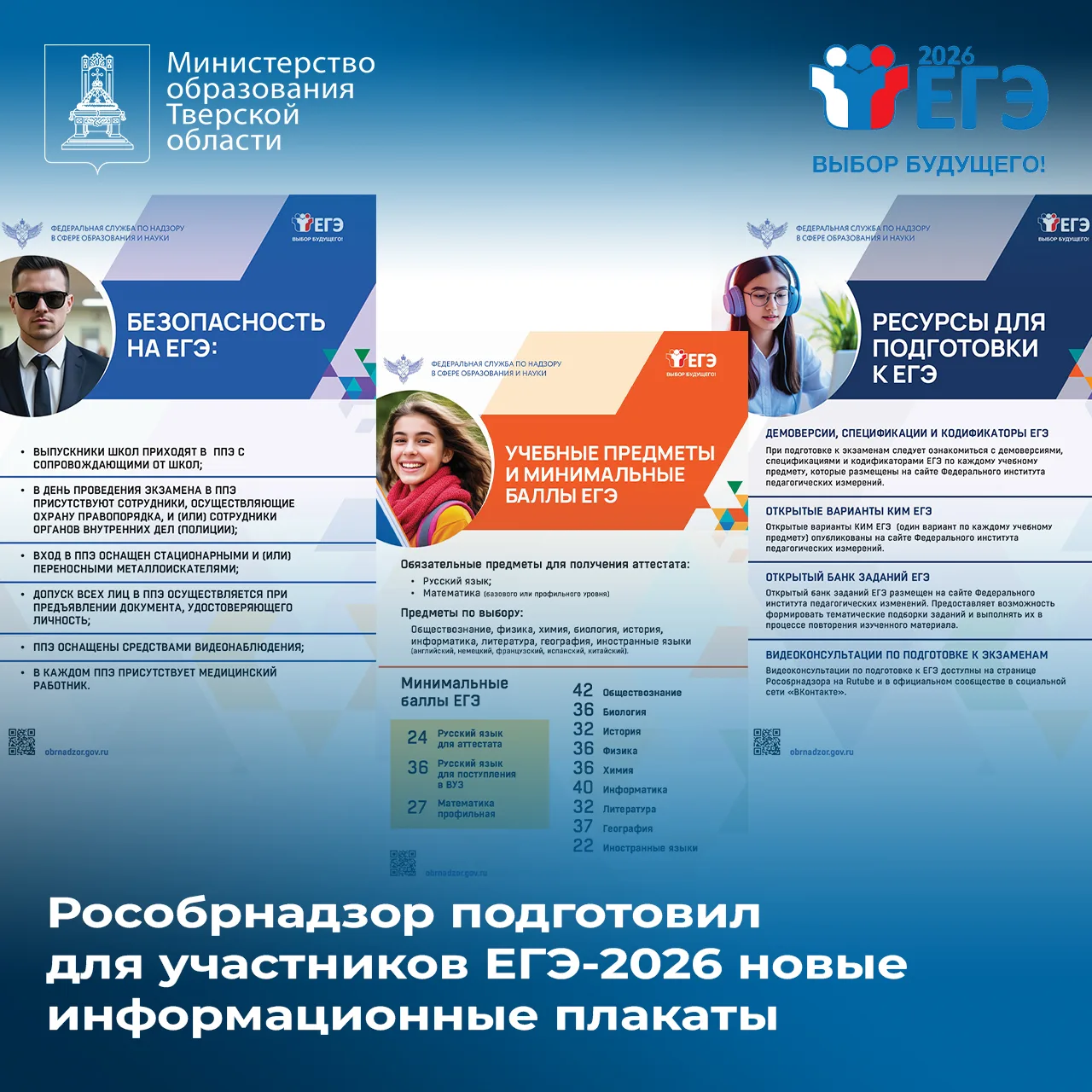 Ознакомиться с расписанием экзаменов на ЕГЭ-2026 можно на сайте Рособрнадзора ➡️ https://clck.ru/3RZ7xA и на сайте Минобразования Тверской области ➡️ https://clck.ru/3RZ7zt.