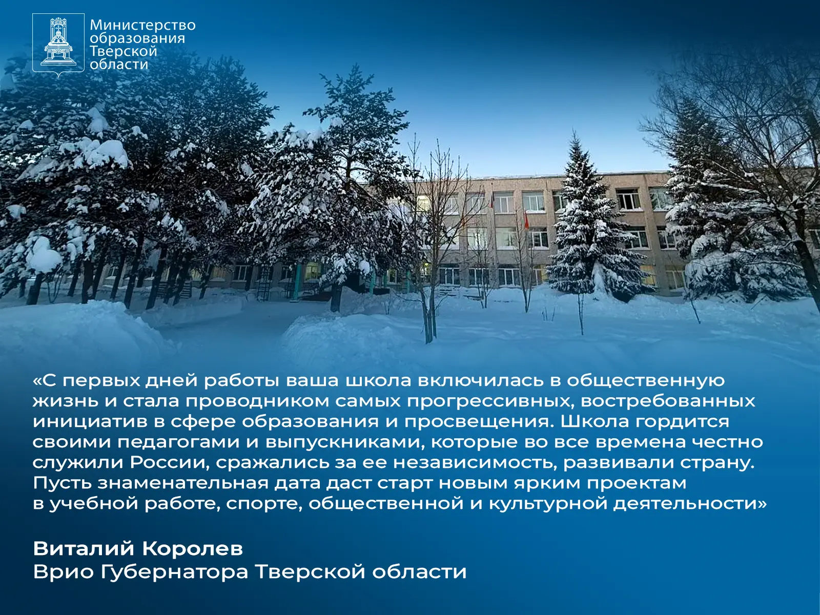 С юбилейной датой коллектив, ветеранов, учеников и выпускников учреждения поздравил врио Губернатора Тверской области Виталий Королев.