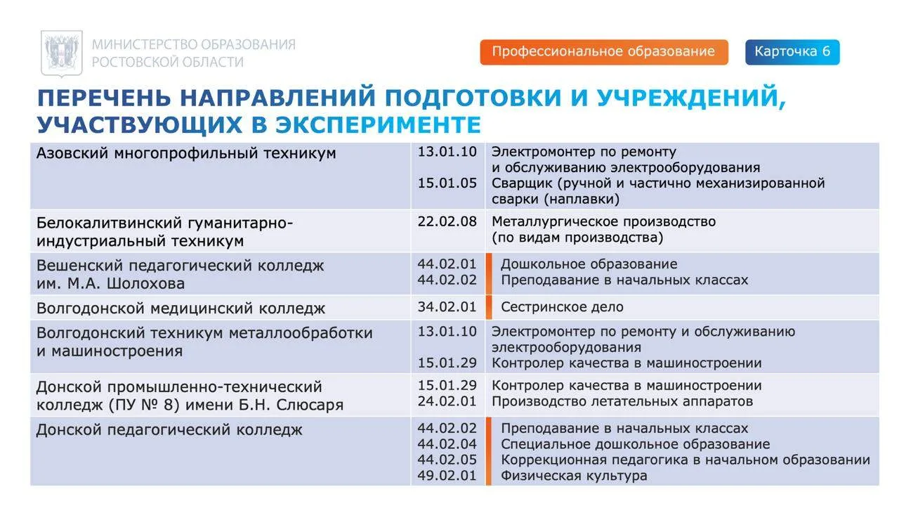 В проекте задействован 21 колледж по 19 специальностям и профессиям.