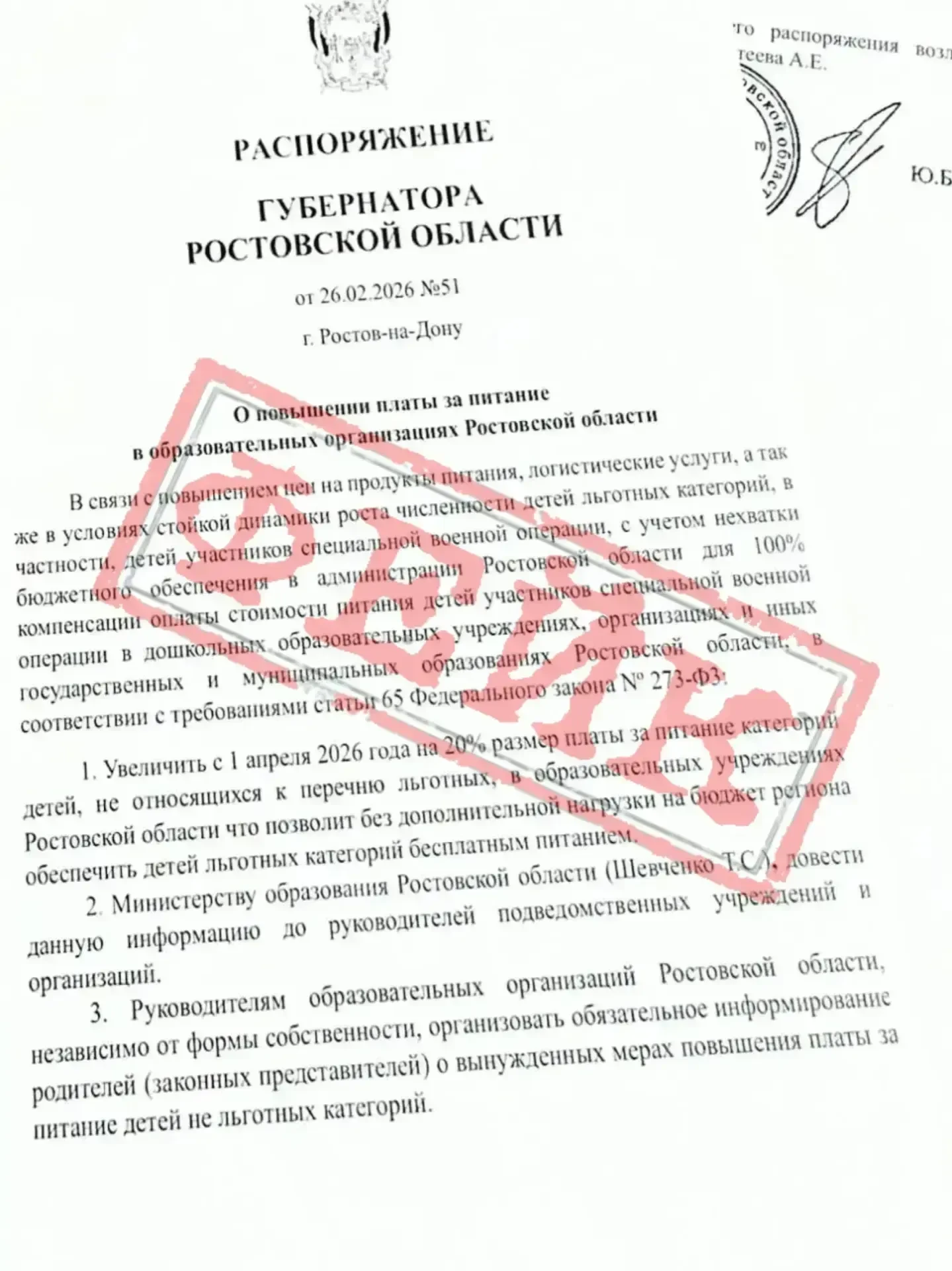 С уважением, министр образования Ростовской области Тамара Шевченко.
