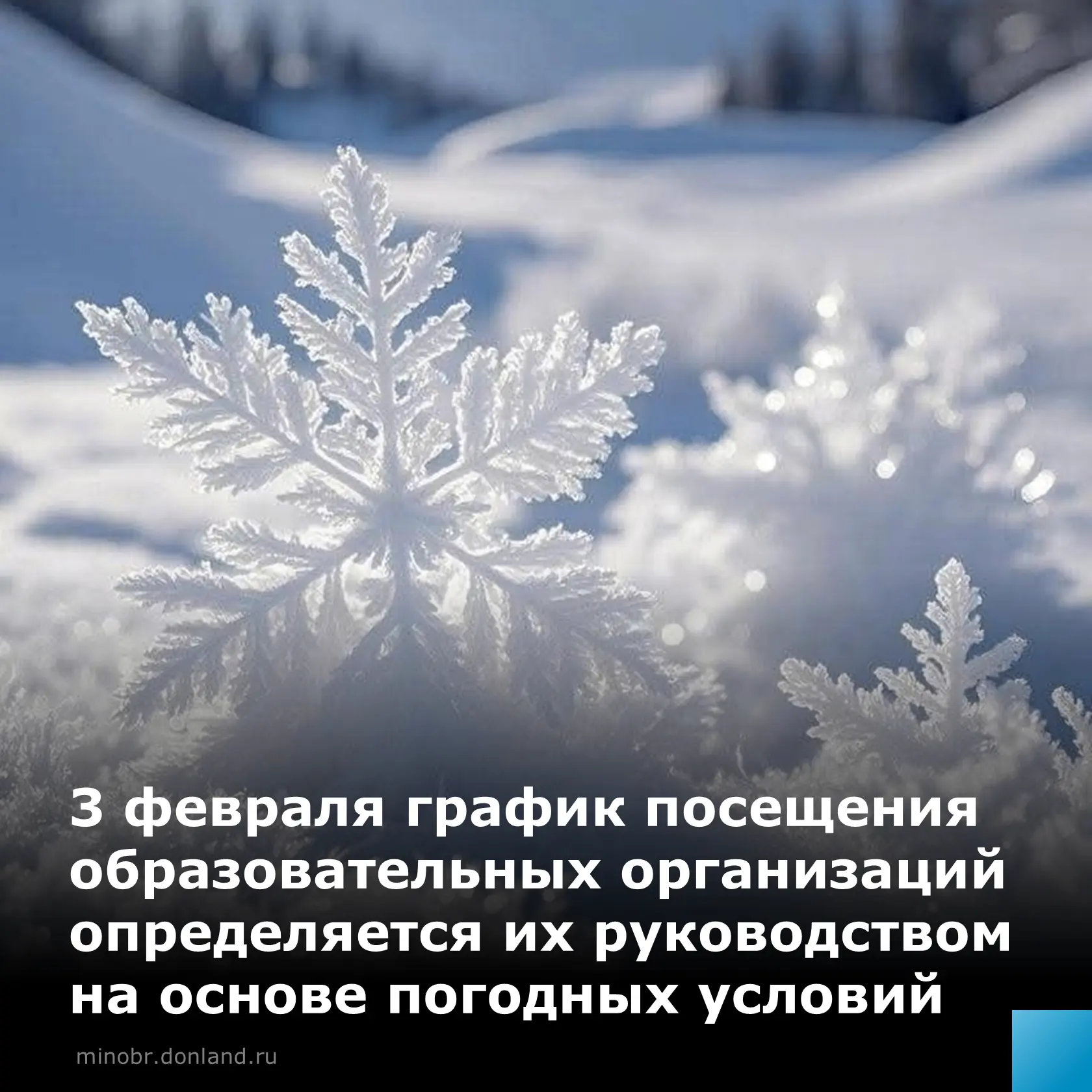 В связи со сложными погодными условиями и значительным понижением температуры 3 февраля режим работы образовательных организаций будет определяться их руководителями в зависимости от погодных и дорожных условий.