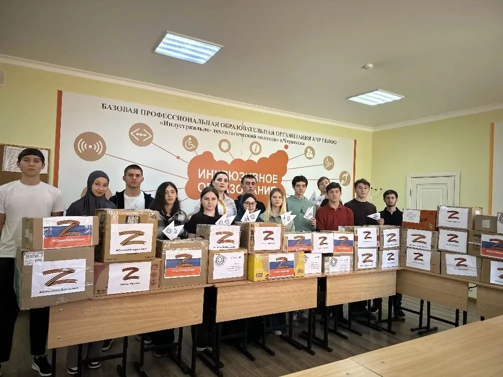 В преддверии Дня защитника Отечества инженерно-педагогический коллектив и студенты КЧР ГБПОО "Индустриально-технологический колледж" г. Черкесска поздравили российских военнослужащих, находящихся на передовой.