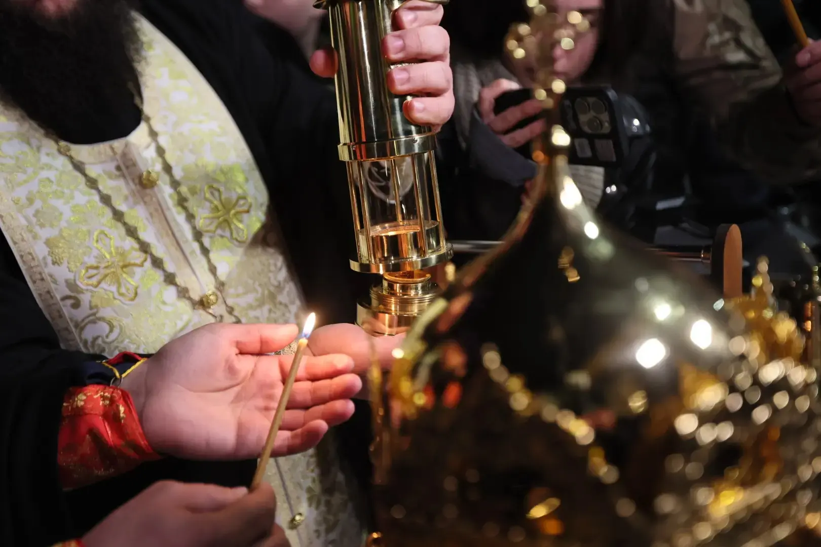 В аэропорт Краснодара святыню привезли спецрейсом из Иерусалима. Частицу пламени священнослужители Кубанской Митрополии передадут во все православные храмы и церкви региона.