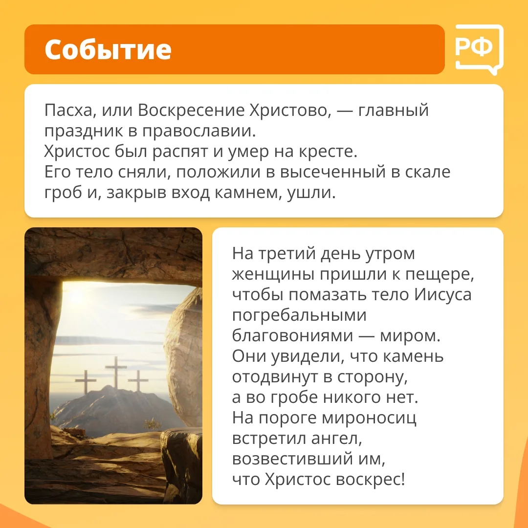 🗓 Сегодня весь православный мир отмечает Пасху — главный и самый радостный праздник в церковном календаре. Он знаменует воскресение Иисуса Христа после распятия, победу жизни и искупление грехов.