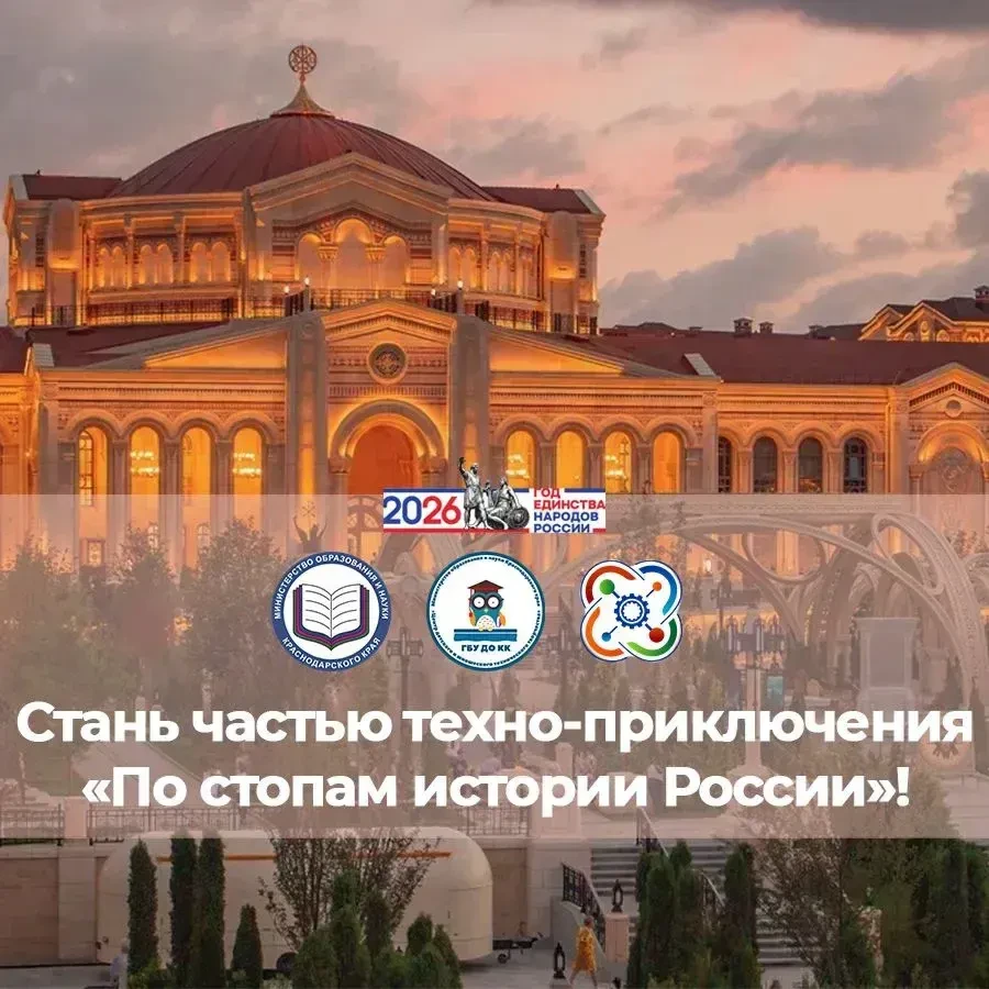 ✔️ С 7 апреля по 22 мая 2026 года пройдет техно-приключение «По стопам истории России», в котором примут участие 100 школьников Краснодарского края.