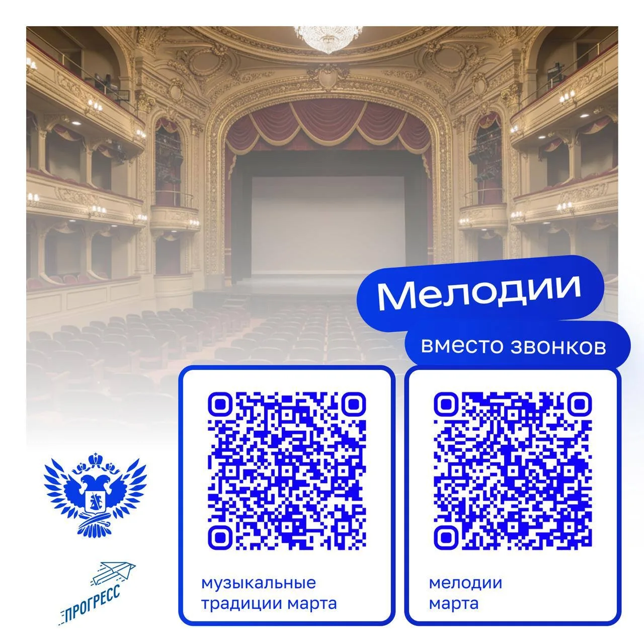 В марте в рамках Всероссийского проекта «Мелодии вместо звонков» стандартные звонки в школах заменят музыкальные композиции, посвящённые юбилею Большого театра и Международному женскому дню.