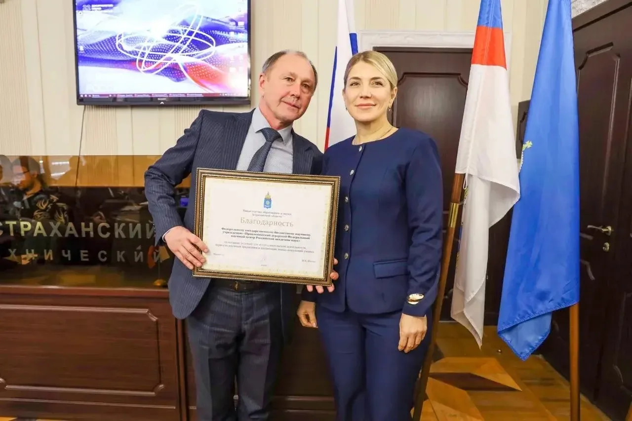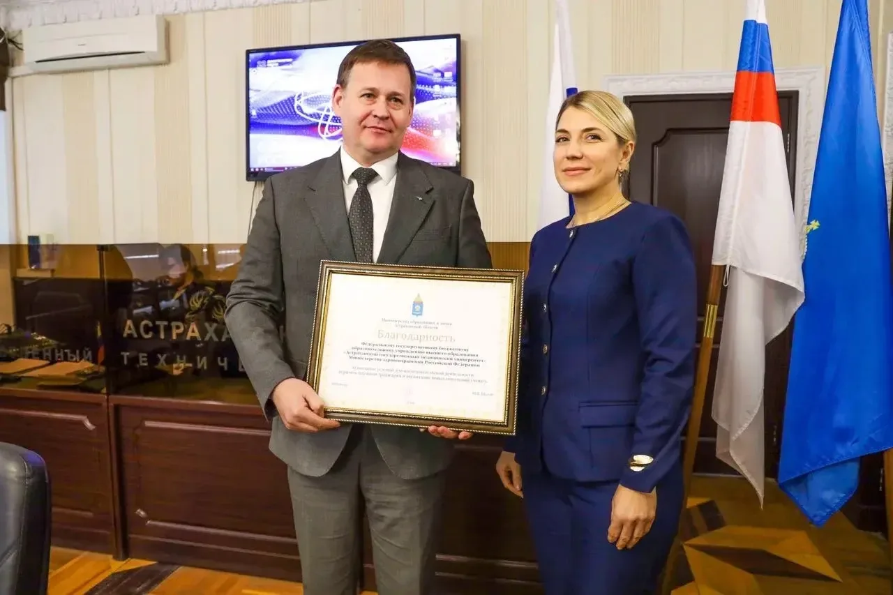 💬 Глава ведомства вручила благодарности министерства образования и науки Астраханской области преподавателям техникума Рашиду Мусабаеву и Андрею Калмыкову.
