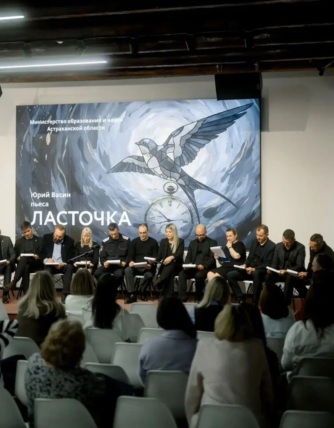 🔹 Публичные читки проходят как в театре, так и на молодежных площадках Астрахани. В Институте развития образования Платформа в роли артистов выступили руководители региональной системы образования, прочитав пьесу краснодарского автора Юрия Васина «Ласточка».