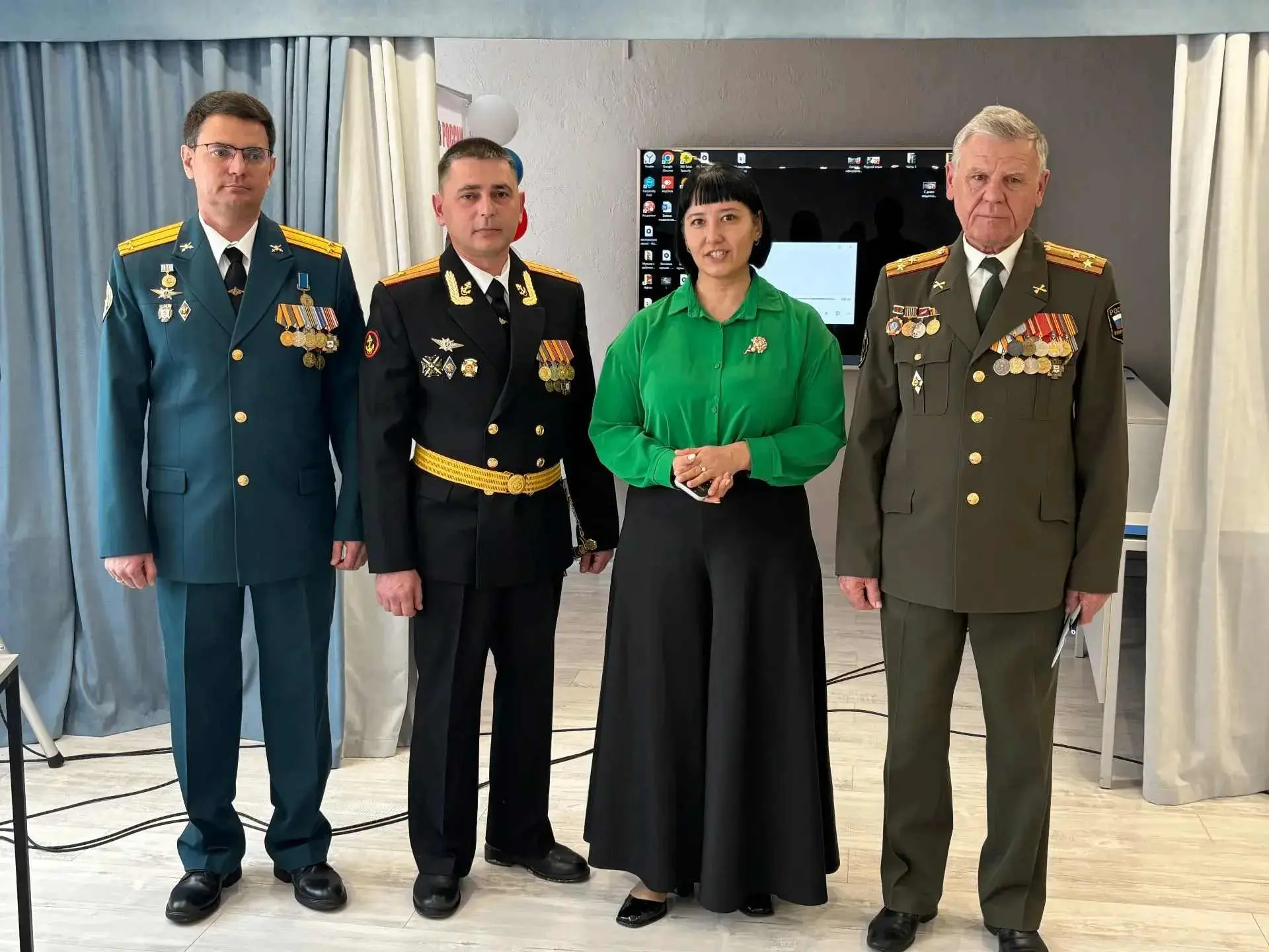 «Урок мужества» для ребят провела династия офицеров Евлампьевых — семья, в которой несколько поколений посвятили себя служению стране. Евлампьев Владимир, преподаватель основ безопасности и защиты Родины Дома детства, полковник в отставке; Евлампьев Александр, преподаватель отдельной дисциплины (математика, информатика и ИКТ) Оренбургского президентского кадетского училища, подполковник в отставке; Евлампьев Павел, эксперт министерства образования Оренбургской области, гвардии майор запаса не только рассказали о традициях и боевых навыках, но и стали для школьников живым примером преданности своему делу.
