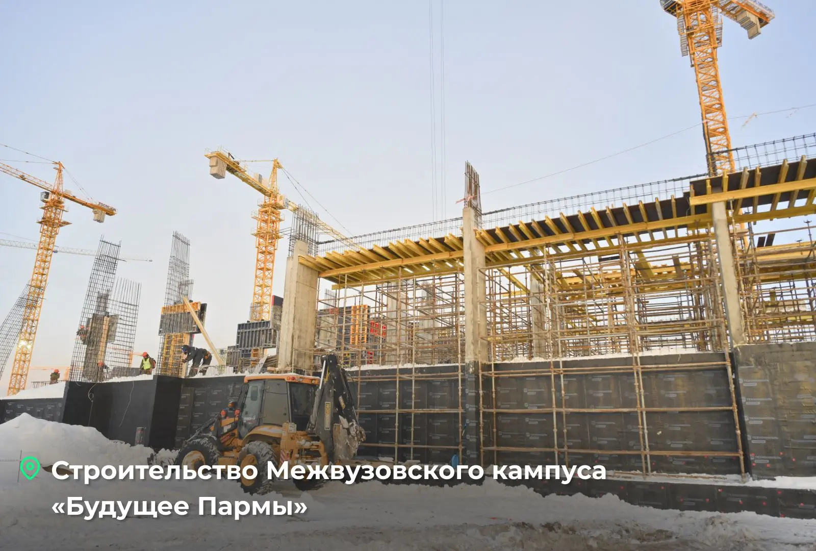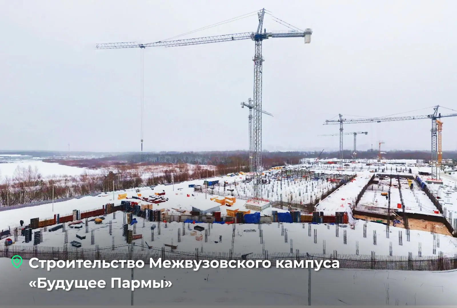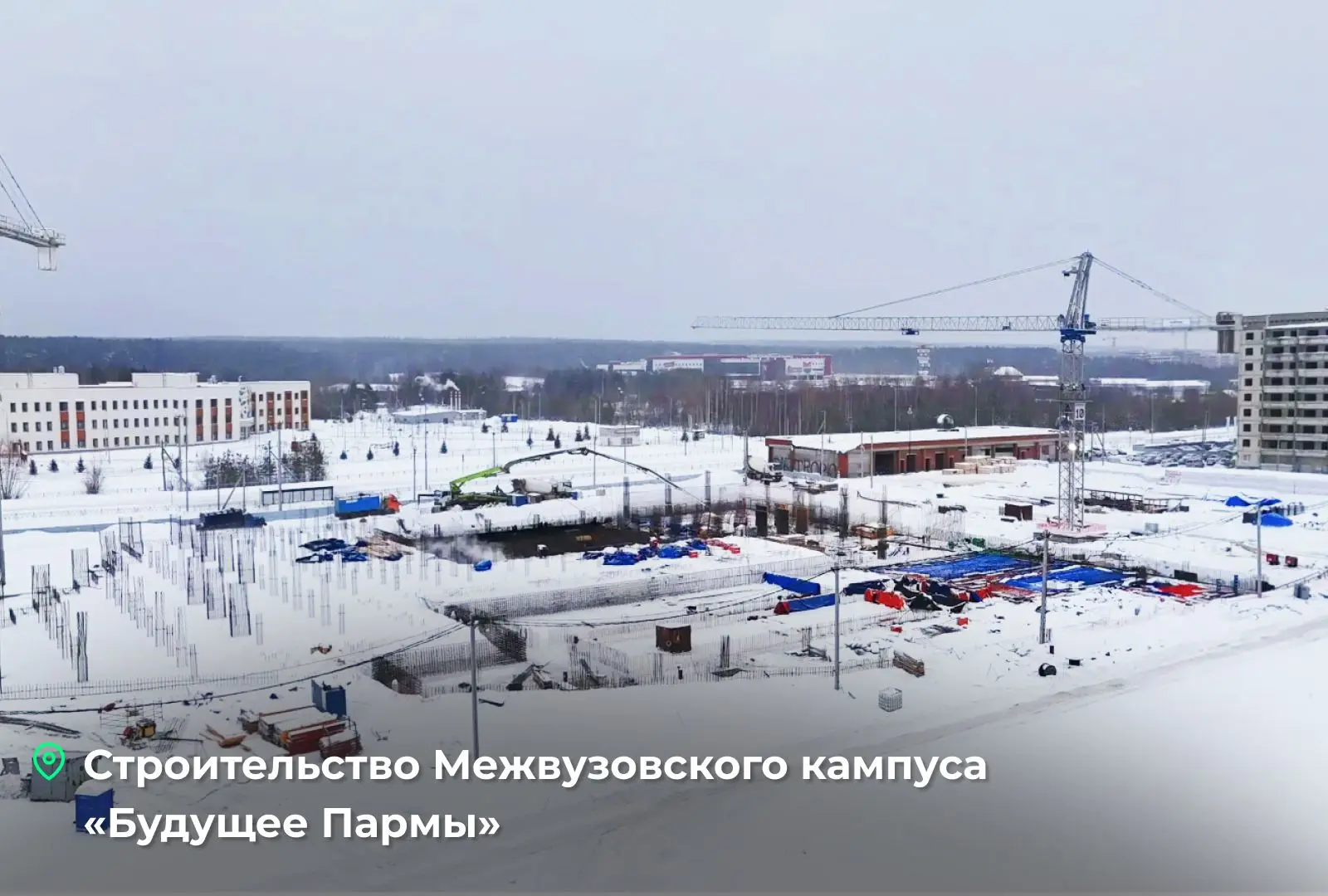 Первая точка — Межвузовский кампус «Будущее Пармы», где будут жить и учиться более 5 тысяч студентов. Возводим современное пространство при поддержке нацпроекта «Молодежь и дети».