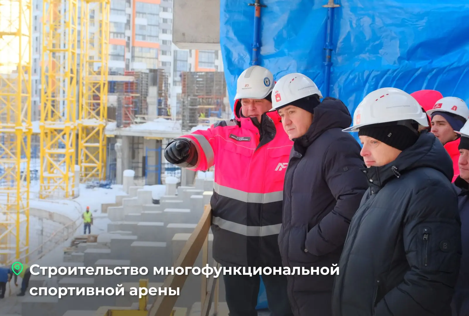 Также проверил ход строительства спортивной арены в районе ДКЖ. Сейчас здесь монтируют каркас здания сразу на нескольких этажах. На цокольном и первом — приступили к устройству полов и перегородок. На пятом этаже устанавливают опорную балку для кровли.