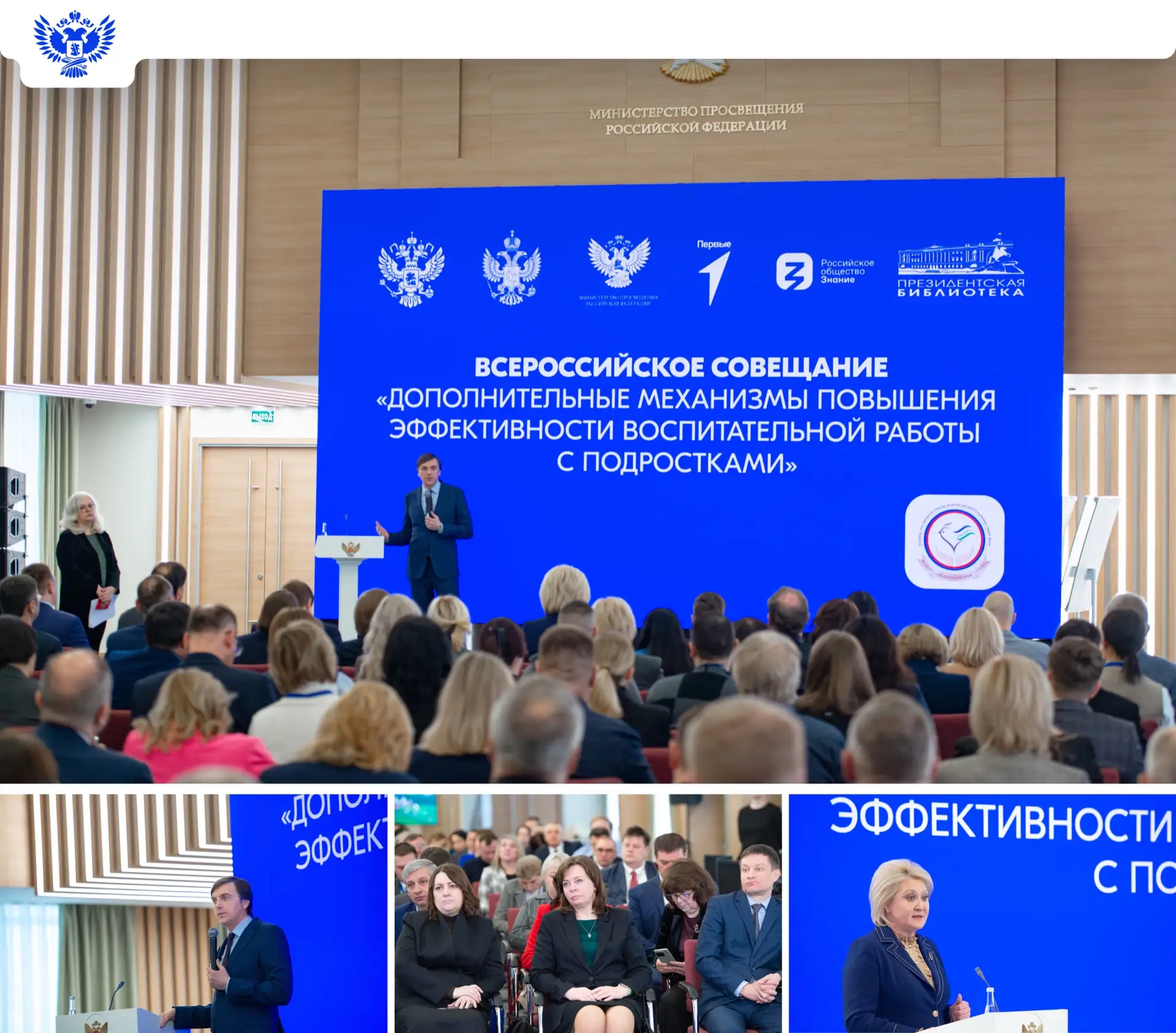 Министр просвещения РФ Сергей Кравцов открыл Всероссийское совещание «Дополнительные механизмы повышения эффективности воспитательной работы с подростками». Мероприятие объединило порядка 190 представителей сферы профилактики безнадзорности.