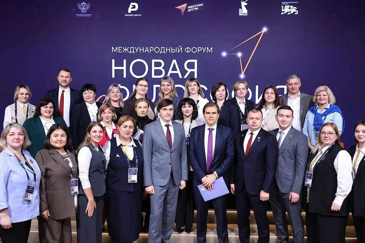 На Международном форуме «Новая философия воспитания» в Национальном центре «Россия» объявили победителей IV Всероссийской детской премии. Навигаторов детства, которых воспитанники признали лучшими в стране, поздравили начальник Управления Президента Российской Федерации по общественным проектам Сергей Новиков и Министр просвещения Российской Федерации Сергей Кравцов.