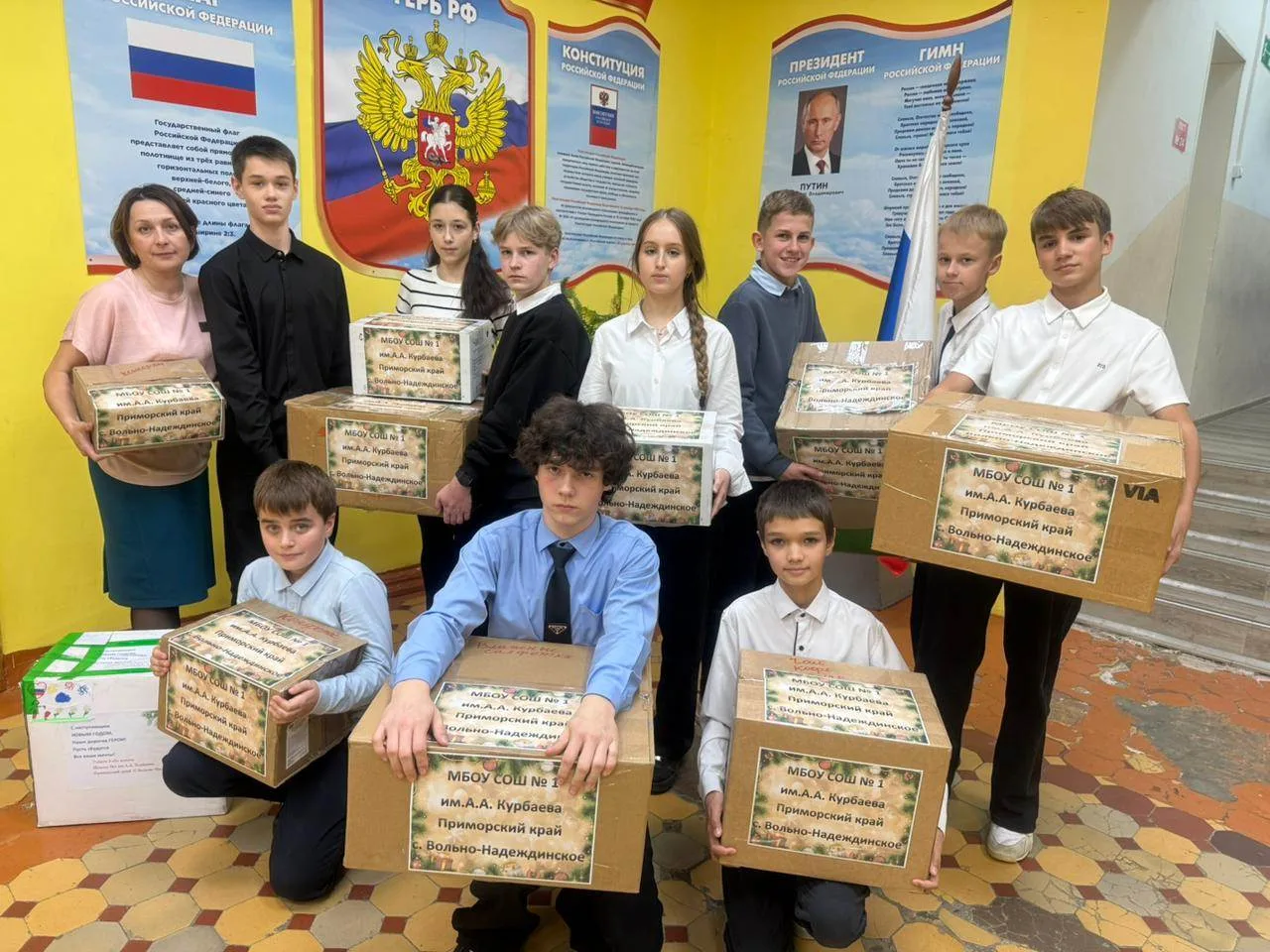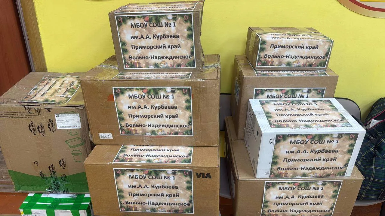 🎁 50 коробок с новогодними подарками отправила школа из села Вольно-Надеждинское на передовую