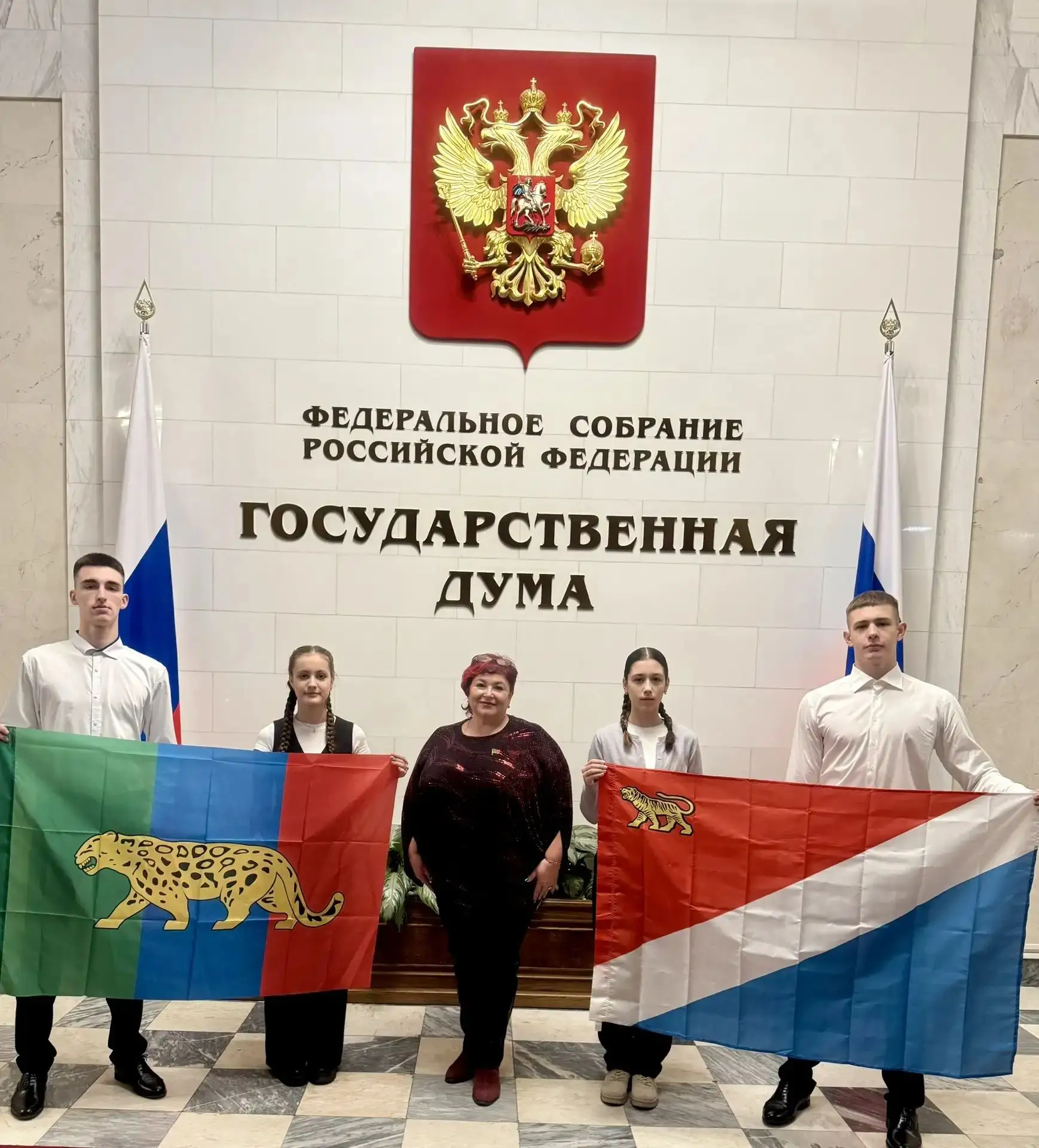 🎓 В состав делегации вошли четверо ребят, каждый из которых уже успел заявить о себе в учёбе, творчестве и спорте. Лев Кравченко — мастер спорта России по плаванию и юнармеец. Артур Кантор активно участвует в жизни школы и общественных проектах. Нина Доманова учится на отлично и занимается творческими направлениями. Ева Боровая также учится на «отлично», участвует в художественных программах и продолжает семейную традицию служения стране — её отец является участником специальной военной операции. Делегацию сопровождала педагог Наталья Годжаева.